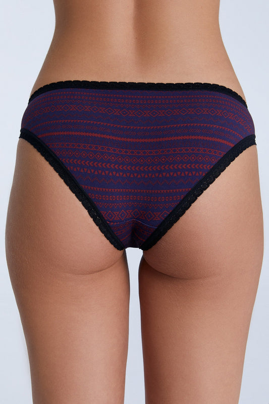 1111-084 | Damen Slip - Tibetrot/Navy Geometrisch