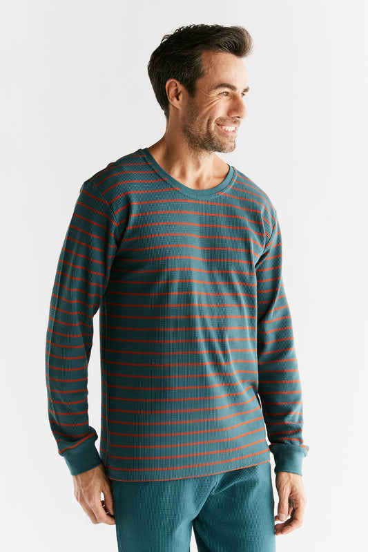 2208-051 | Waffel Strick Herren Langarmshirt - Tanne/Tabasco