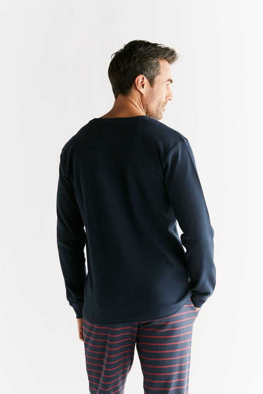 2208-049 | Waffel Strick Herren Langarmshirt - Indigo/Rosarot