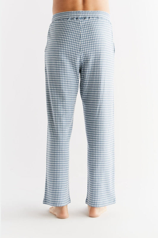 2455-02 | Herren Homewear Hose kariert - Denimblau-Natur