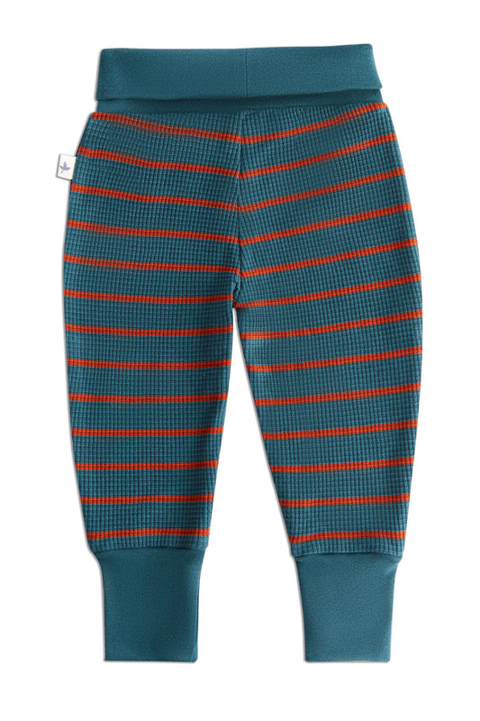 2869 WS | Waffel Strick Babyhose breiter Bund - Tanne/Tabasco