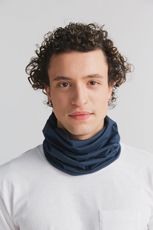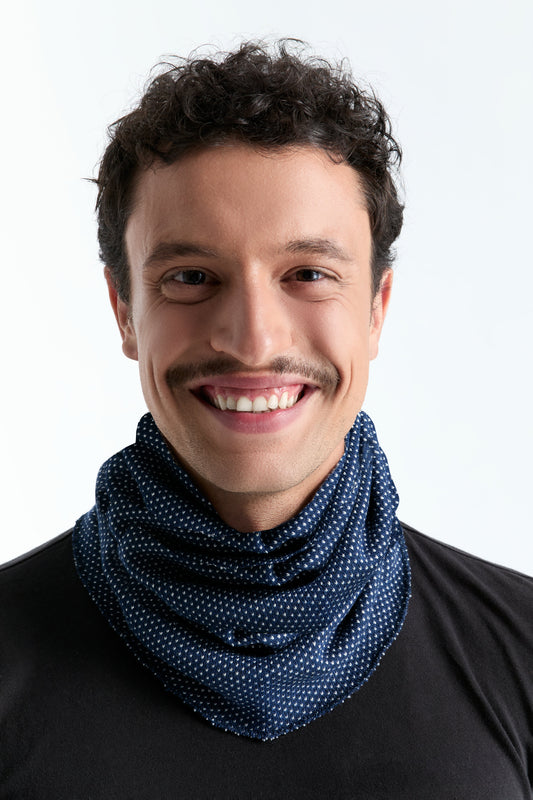 9627-130 | Unisex Schlauchschal mit Wabenstruktur - Indigo / Naturweiss
