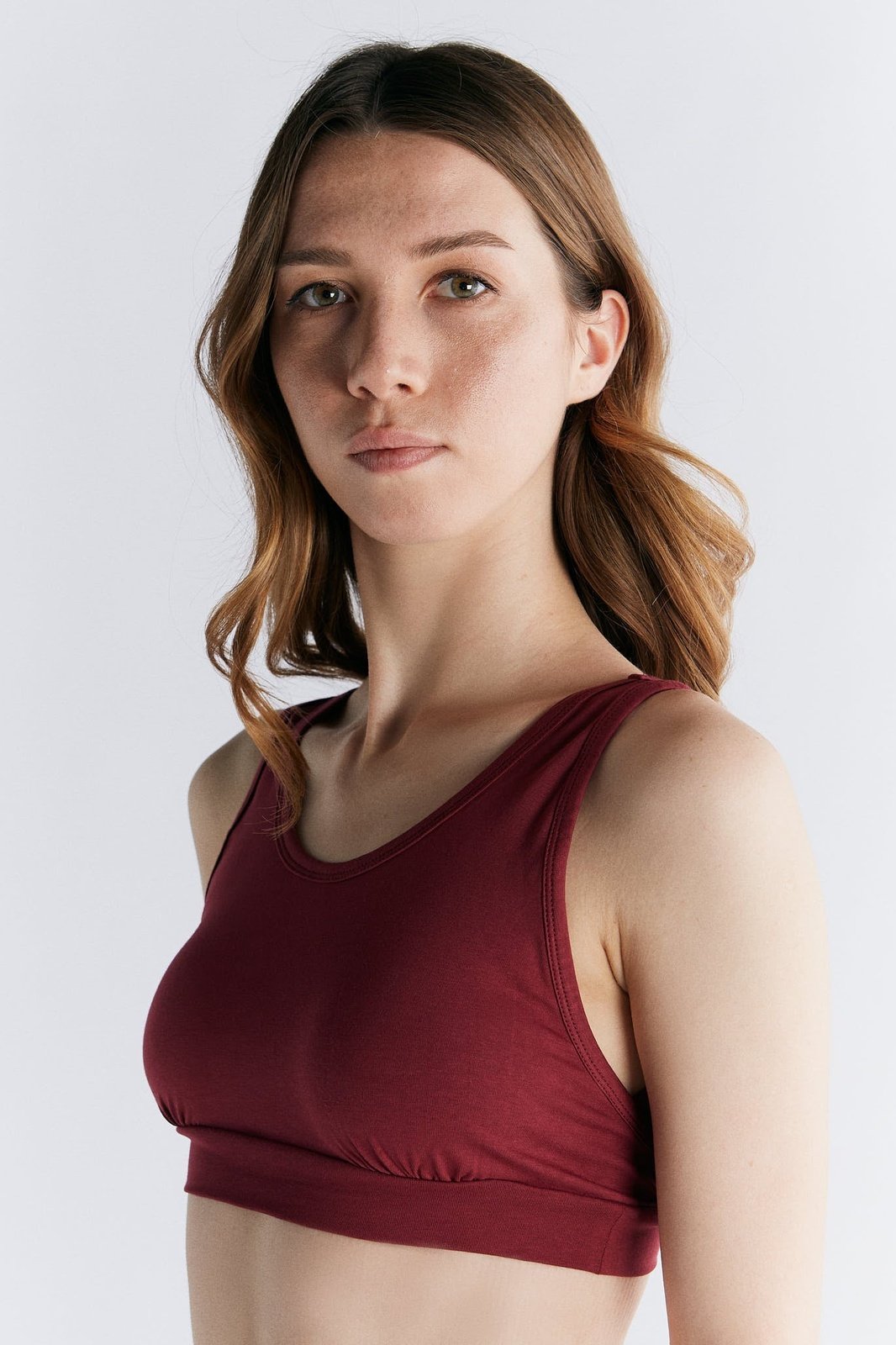 Sportliches, bequemes Design mit breiten Trägern. Aus elastischem Stoff für hohen Tragekomfort beim Sport. Bustier mit überlappendem Schnitt unter den Achseln. Hochwertige Qualität, angenehm auf der Haut. Weicher Baumwolljersey: 95% kbA-Baumwolle, 5% Elasthan.
