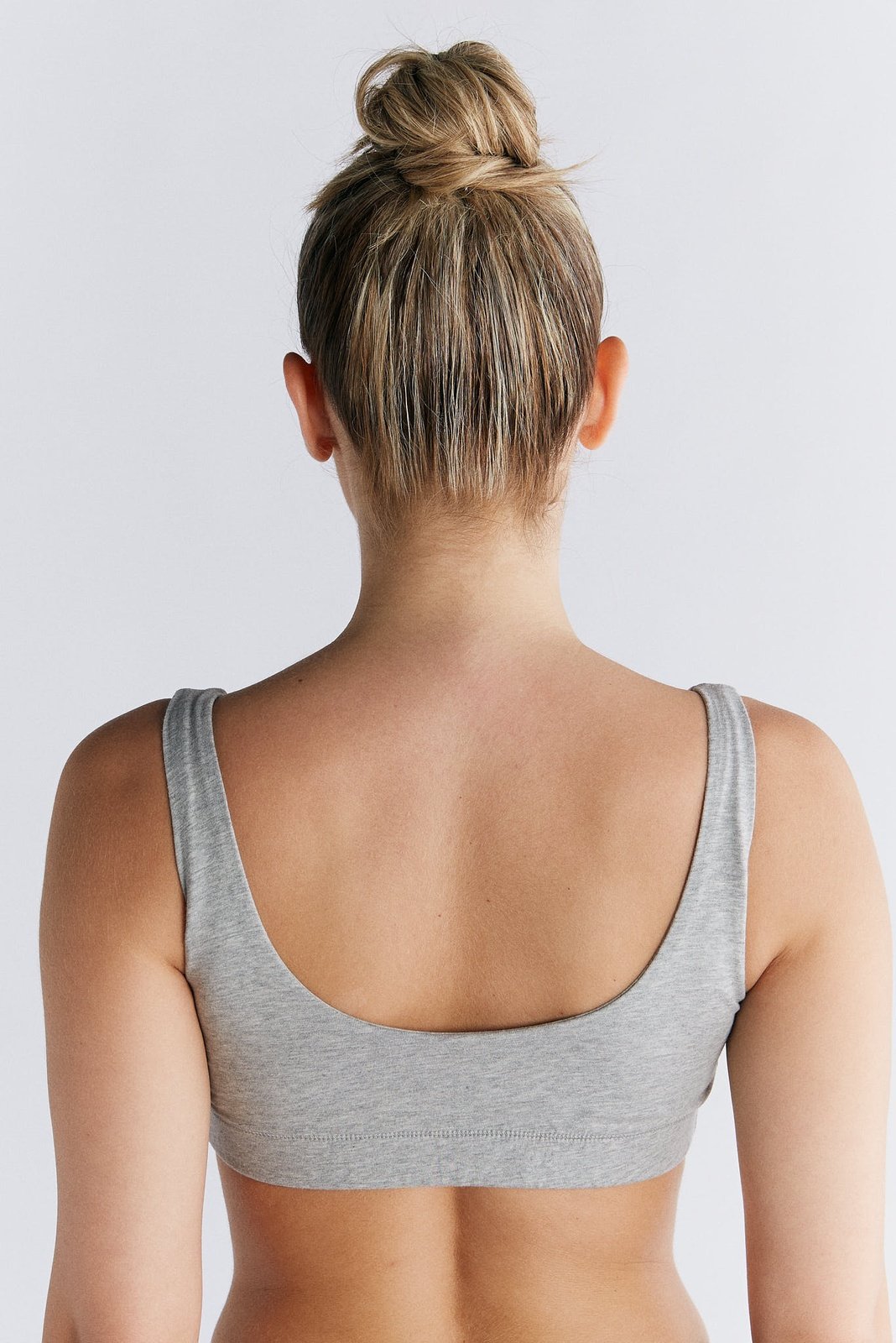 Sportliches, bequemes Design mit breiten Trägern. Aus elastischem Stoff für hohen Tragekomfort beim Sport. Gepolstertes Bustier mit sportlichem Design. Breites, elastisches Bündchen. Weicher Baumwolljersey: 95% kbA-Baumwolle, 5% Elasthan.