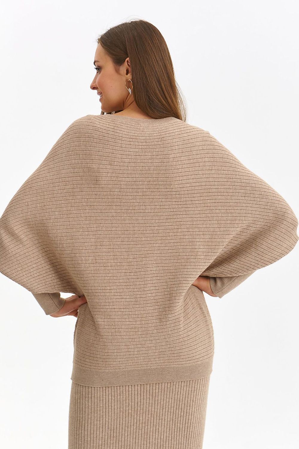 This sweater has a unique bat cut, which means that it has a looser fit that falls gently on the shoulders, creating a bat wing effect. It's a great choice if you like comfort and an original look. This sweater also has long sleeves and a round neckline, making it suitable for everyday wear. The decorative ribbed pattern gives it an interesting look. It's the perfect choice to add a touch of casualness and originality to your closet.