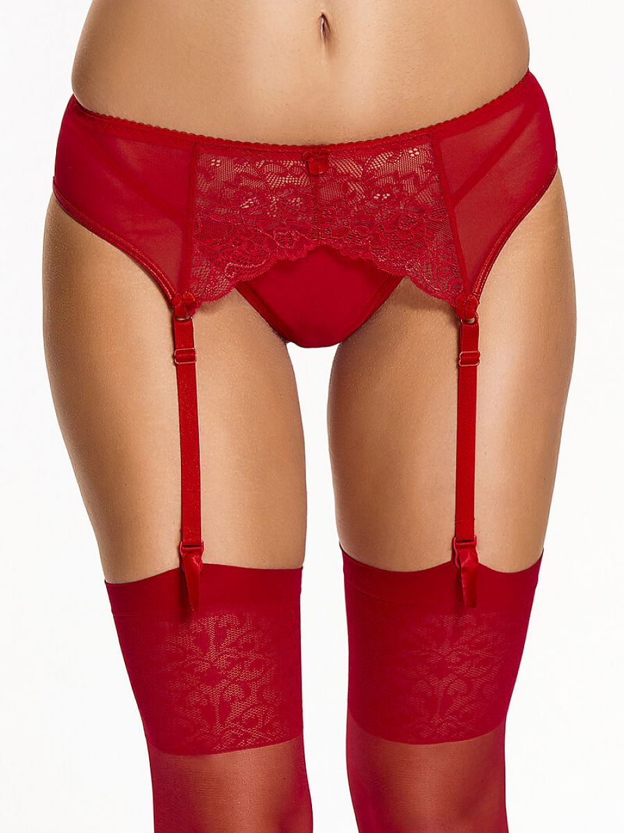 Sexy garter belt. Comfortable and discreet. Made of delicate tulle net, the front decorated with a seductive, delicate embroidery, smooth back made of tulle net, adjustable fastened with hooks.