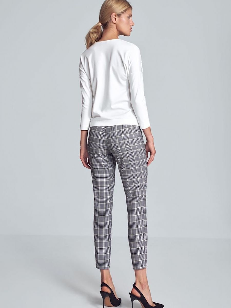 Elegant short blouse with an envelope neckline finished with a decorative piping, a lovely dropped shoulder, 3/4 length sleeves, bottom hem.