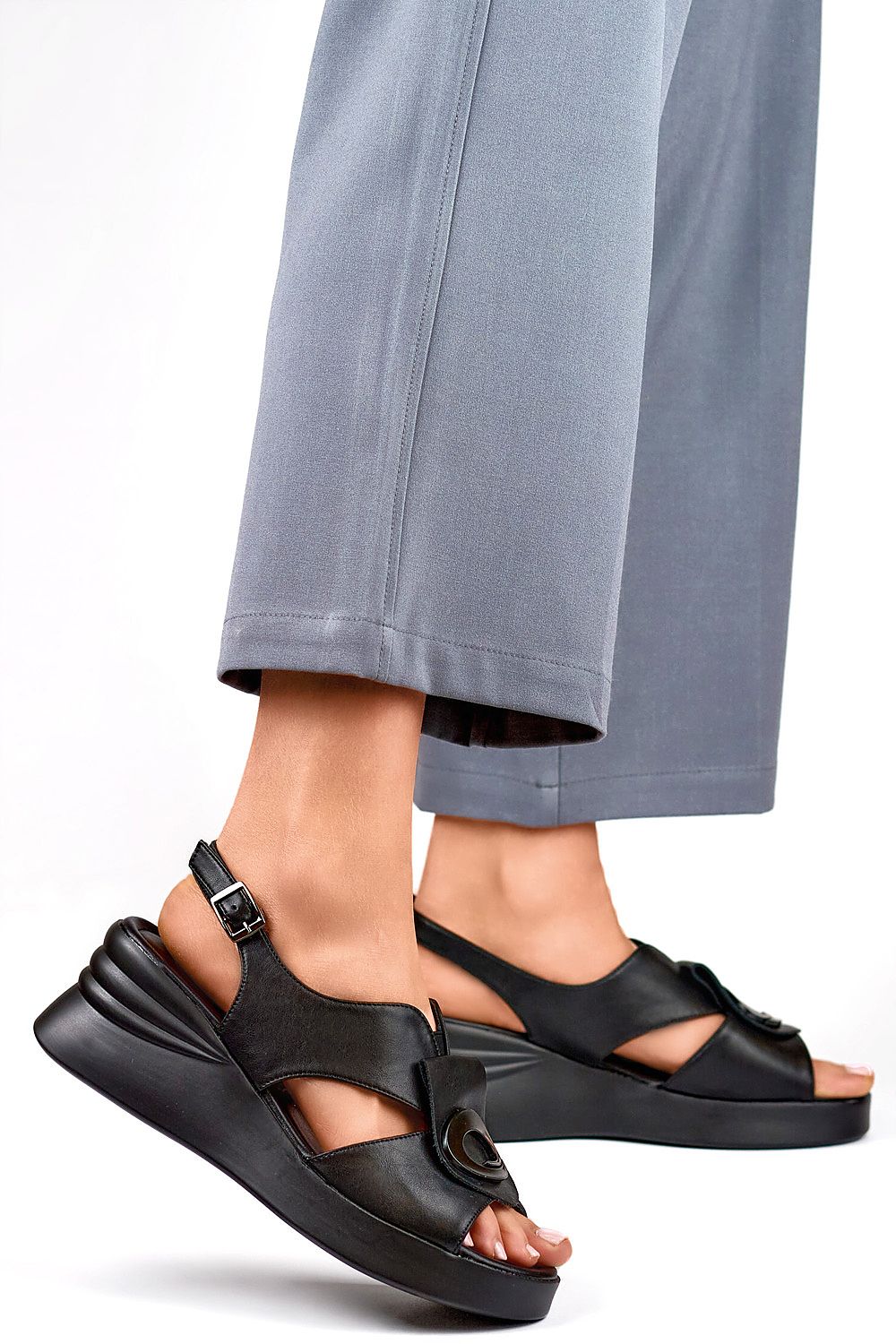 These sandals are the essence of elegance and comfort, perfect for summer days. Their upper is made of high-quality natural leather, which not only guarantees durability, but also adds to their unique charm and class. The interior of the sandals is lined with a soft natural leather insole, providing not only comfort in wearing, but also adequate ventilation for the feet, ideal for warm spring and summer days. The 6 cm high ankle heel not only adds subtle elegance to the shoes, but also provides stability and comfort when walking. The sandals have a buckle fastening, which allows you to easily adjust the length of the strap and fit the shape of your foot. The open toe adds lightness to the shoes and makes them an excellent choice for hot days, allowing the feet to breathe freely. Thanks to the combination of natural leather, comfortable insole and elegant design, these sandals are not only a practical part of your summer closet, but also an expression of sophisticated style and natural beauty. They will go perfectly with summer dresses for evening outings, as well as with everyday casual outfits.
