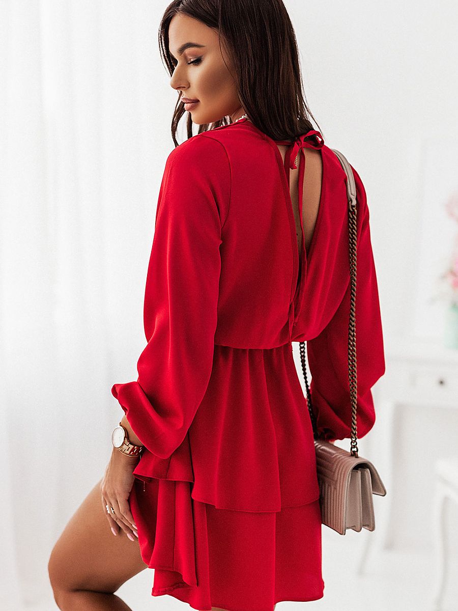 Madellay dress is a sensational cut, perfect for every figure! Loose, oversize top with an overlapping V neckline and slightly buffeted sleeves finished with an elastic band. Ideal for breastfeeding women or women with larger breasts. Elastic at waist for comfort. The bottom of the mini is made of two layers of frills making it look airy and light. Match it with stilettos or heavy boots and we guarantee you will make an impression during every outing!