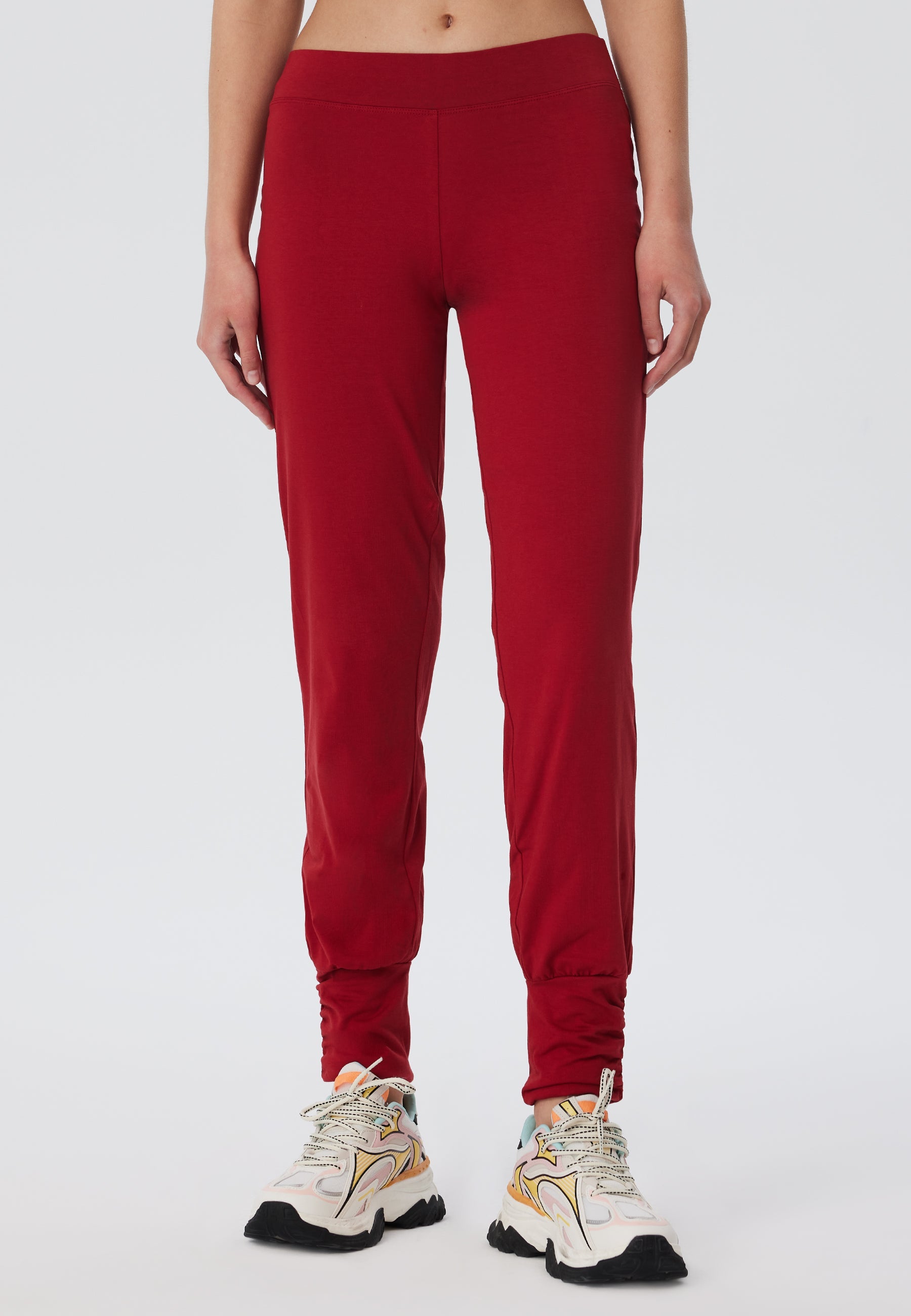 Rote Yogahose, aus leichtem formstablien Jersey. Die Lockere Passform ist super geeignet für Wellness, Sport und die Freizeit. Der Gummizug an der Taille, sowie die gerafften Beinabschlüsse, verleihen dir einen tollen Tragekomfort. Aus 95% Bio-Baumwolle (kbA) und 5% Elasthan.