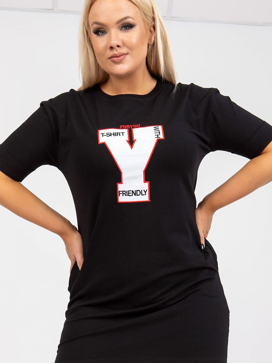 Mini dress with short sleeves, worn over the head. Patch on front.