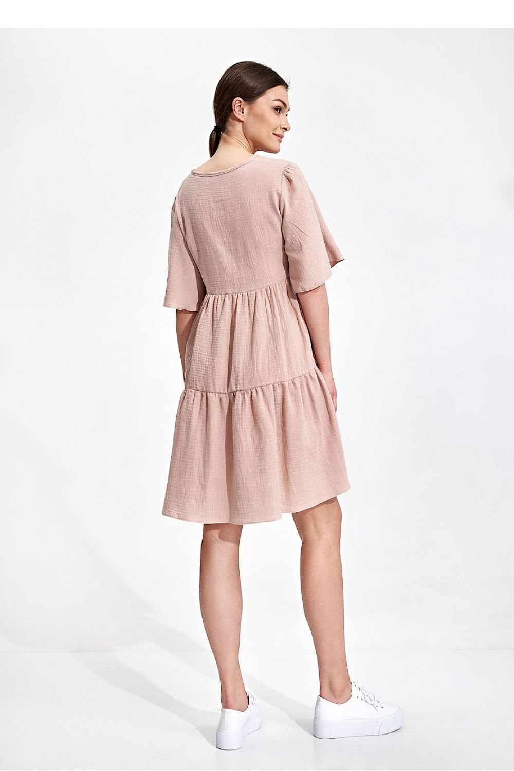 Summer flared mini dress with ruffles. Dress with short flared sleeves. Dress has no lining and pockets.