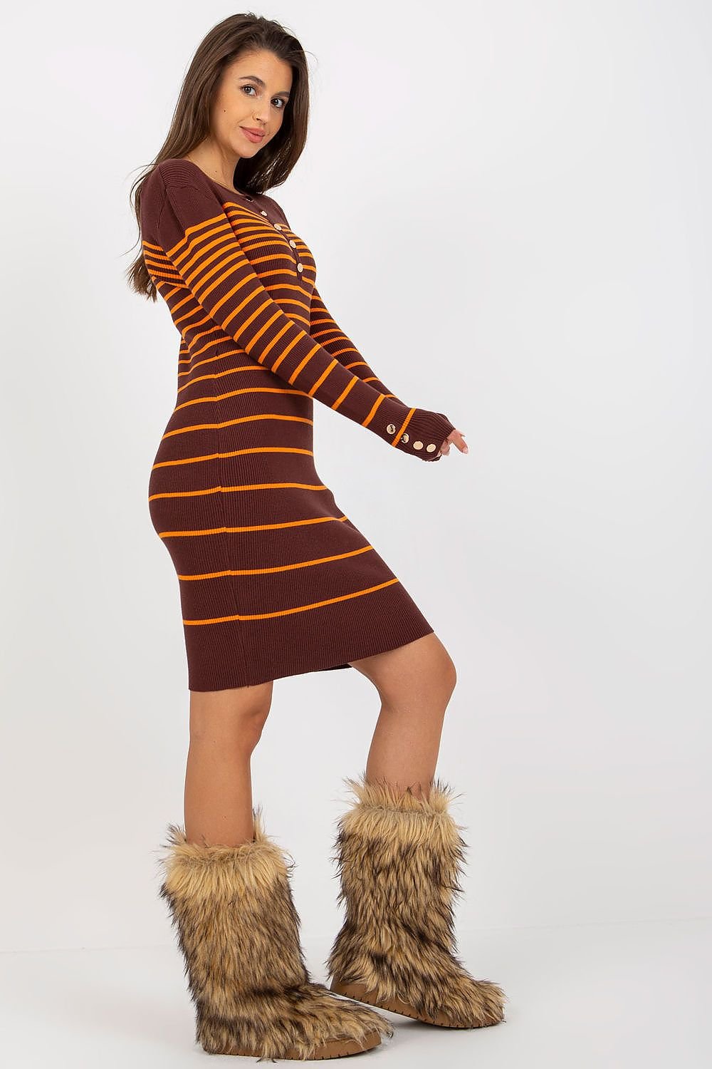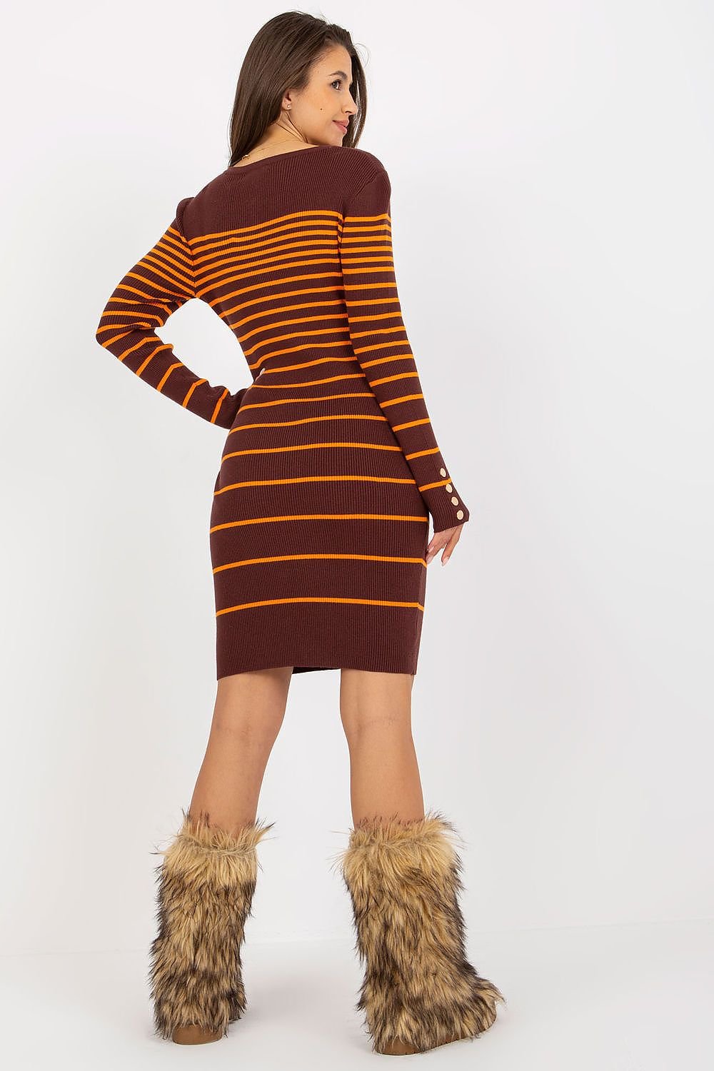 Knit dress in a fitted cut with long sleeves and a round neckline. The dress is fastened with press studs on the front, decorative buttons on the sleeves.