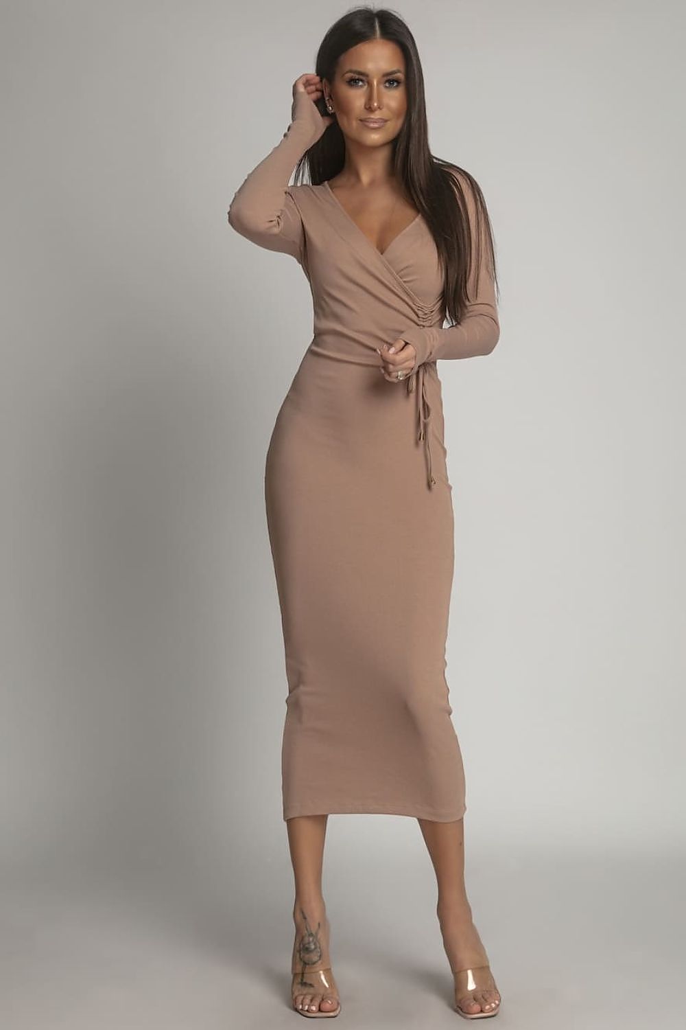 The pencil dress will allow you to emphasize the assets of your figure. The solid-color dress features a fitted cut, envelope V neckline and long sleeves that optically slenderize the neck and bust. Sensational for everyday wear, for work or for meeting with friends..