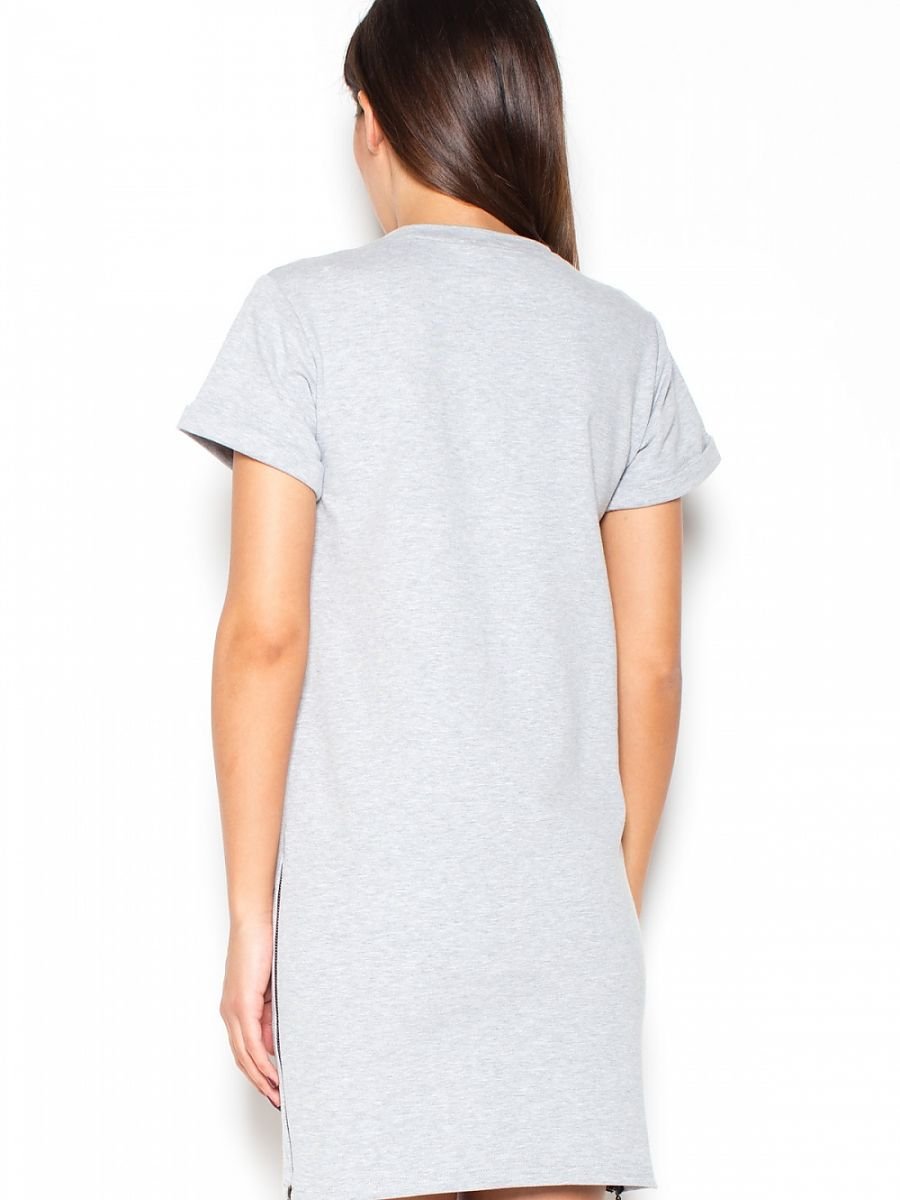 Straight cut sweatshirt dress. Dress with short sleeves. On the sides at the bottom sewn zippers.