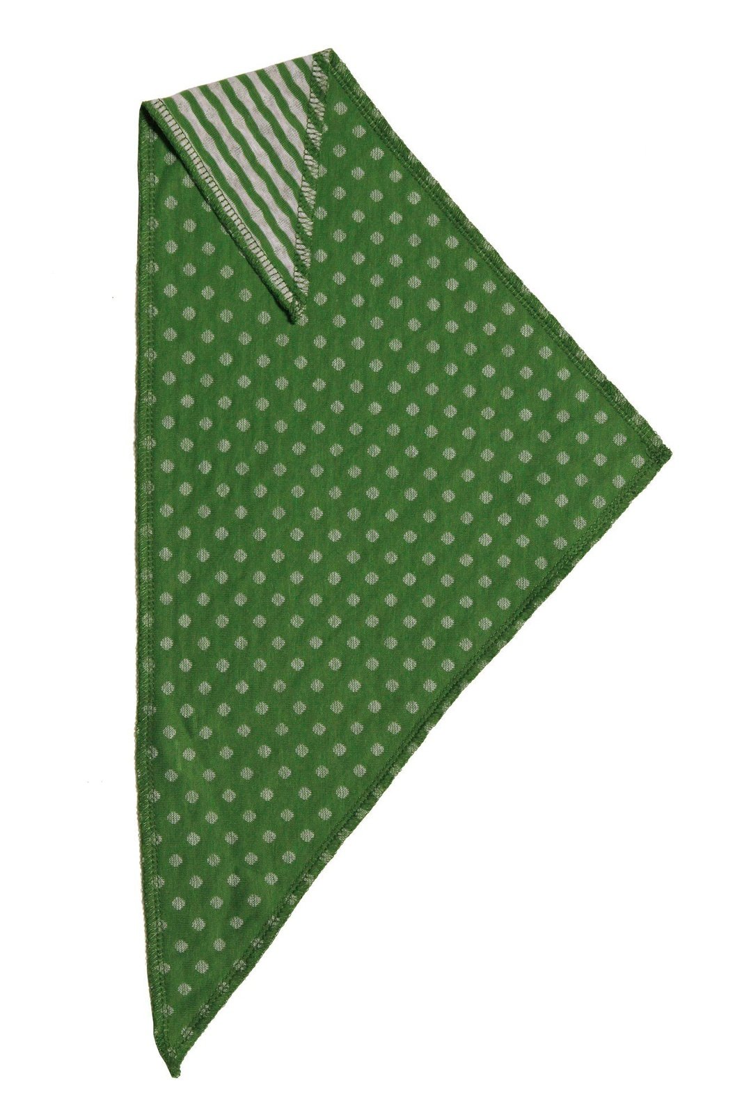 Tolles Halstuch aus doppelseitigem Interlockstoff, 100 % Bio-Baumwolle in einem vitalen Waldgrün mit beige-melange Streifen auf der einen Seite. Die andere Seite überzeugt im Waldgrün mit beige-melangen Punkten. Hält den Hals warm und kann bei Verschmutzungen gewendet werden. Maße: 50x20 cm, Lieferung als 4er Pack.