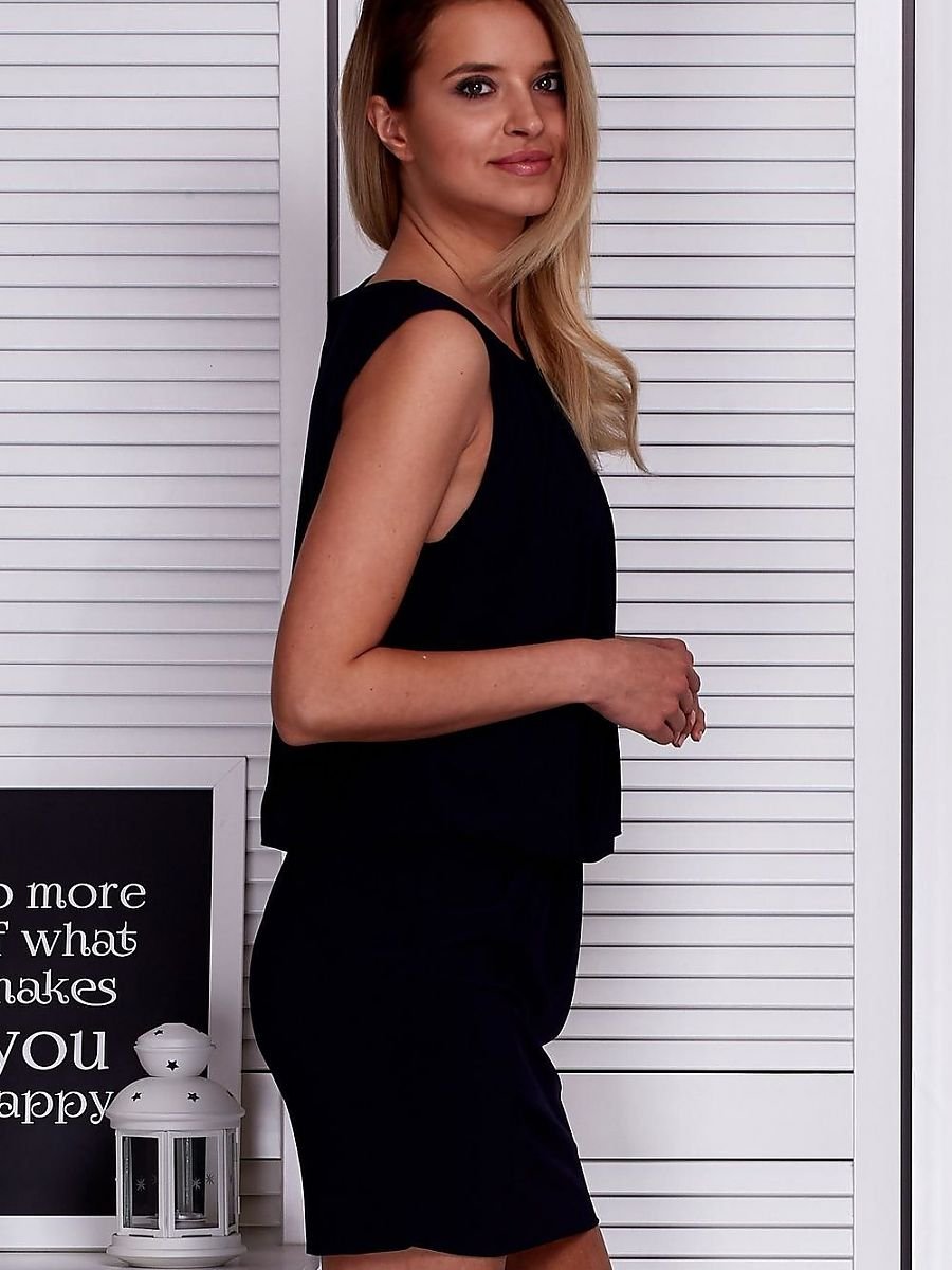 Ladies dress in navy blue with a crease. Ideal for an evening out.