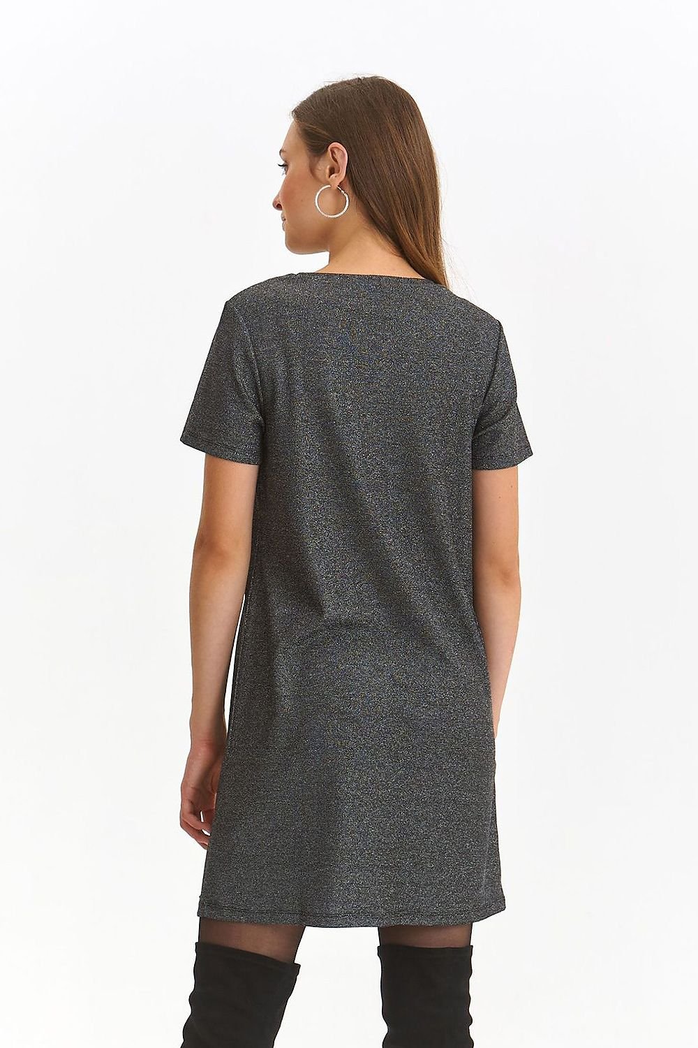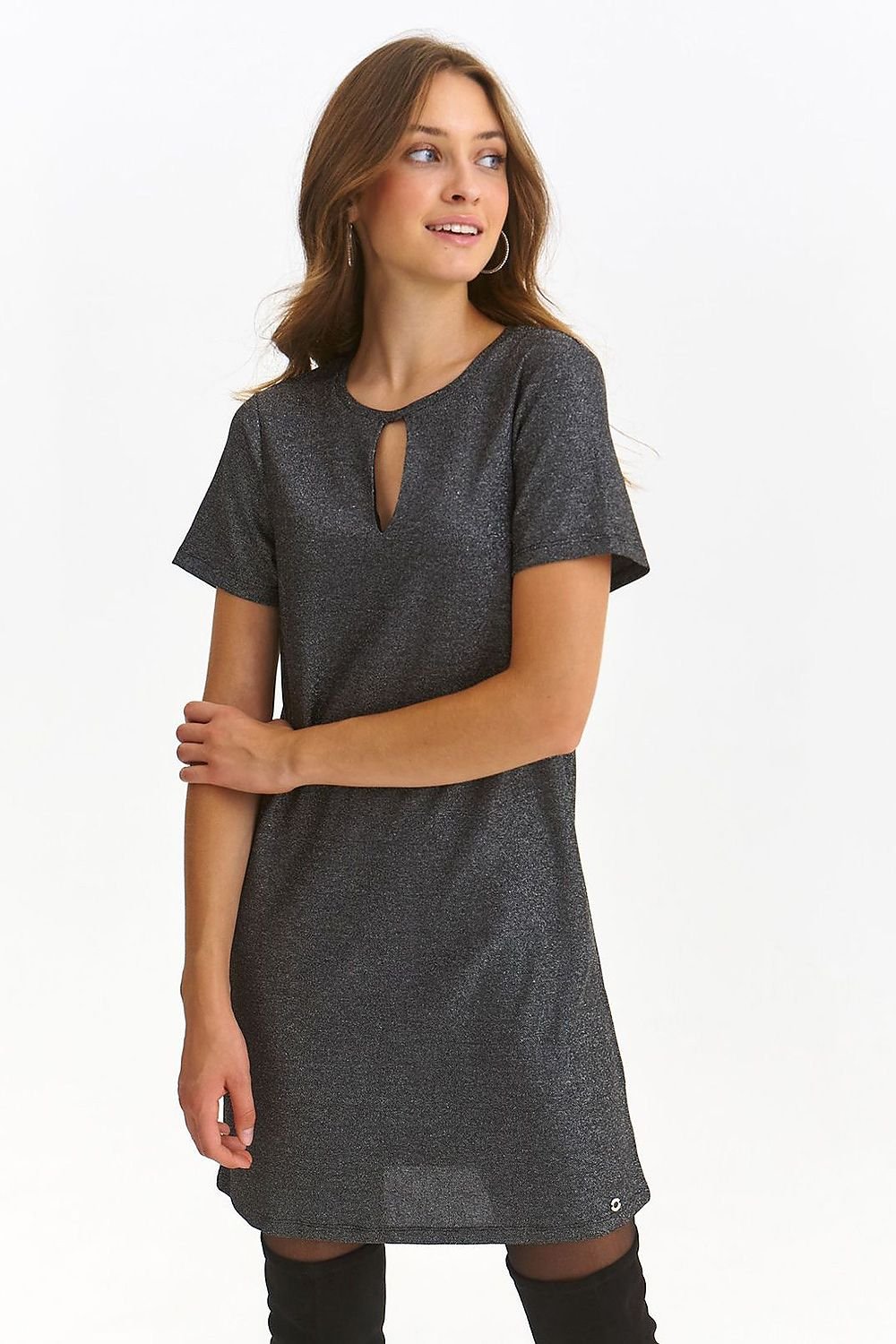 This charming short-sleeved dress is the perfect choice for many occasions. Its subtle sheen, caused by the presence of metallic thread, gives it elegance, and the break at the neckline adds a touch of chicness. The dress is designed to accentuate a woman's figure and feel comfortable. With its unique fabric with shimmering thread, it is sure to attract attention and make you feel special. It's the perfect option for evening parties, formal occasions and other events where you want to shine in full glamour.