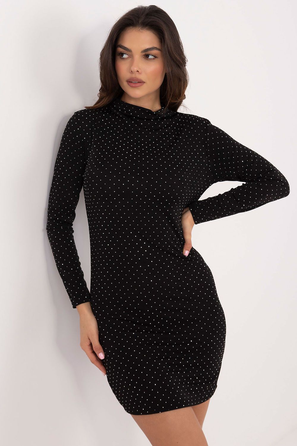 Elegant pencil dress for any event. The fitted cut accentuates the figure, while the mini length adds sex appeal. Long sleeves and a high collar balance the bold cut. The dress is made of a pleasant-to-touch material that fits perfectly. Striking rhinestones add sparkle and make the dress perfect for special occasions. The lack of a clasp ensures comfortable wearing. This dress is a must-have for any woman who wants to feel special. Its elegant design and high quality workmanship will make you the star of any party.