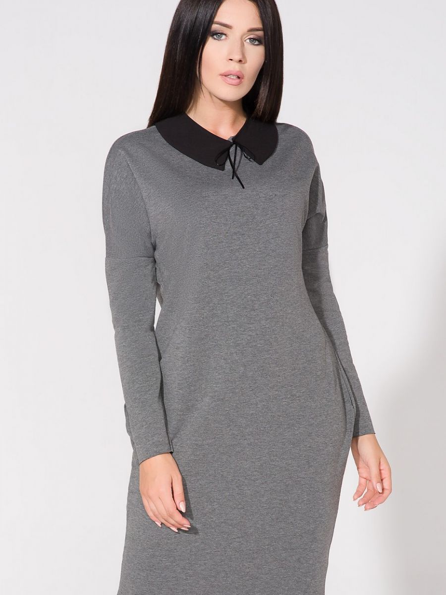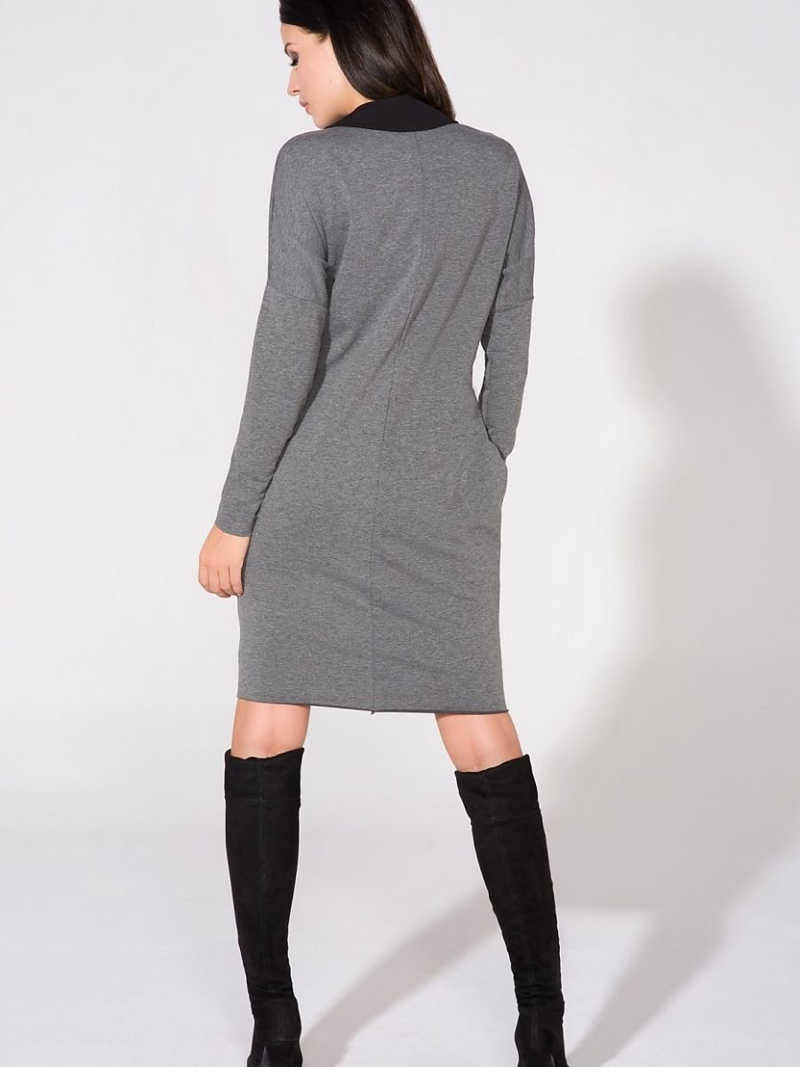 Wide cut dress with pockets on hips. Bottom, sleeve and neckline left raw. Attached to the dress is a collar that gives a chic and elegant.