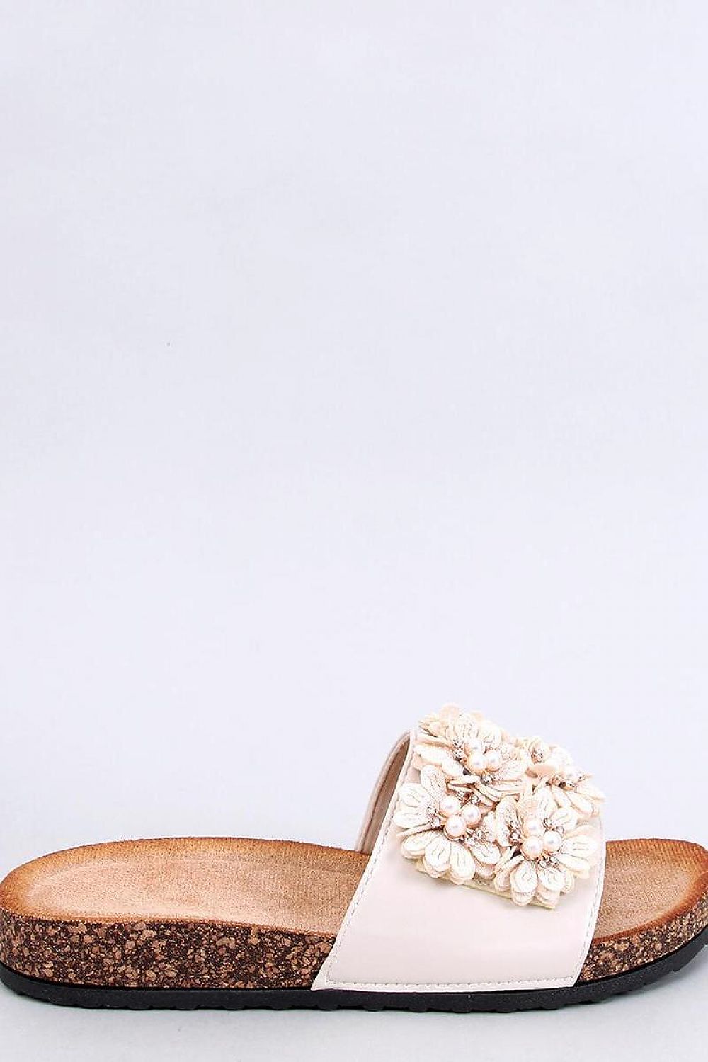 Women's leather sandals on a cork sole. Adorable little flowers with shiny pearls and rhinestones will steal your hearts :) Meanwhile, the contoured inner insole will make you want to take them on every holiday walk :) Outer material ? eco-leather + fabric.