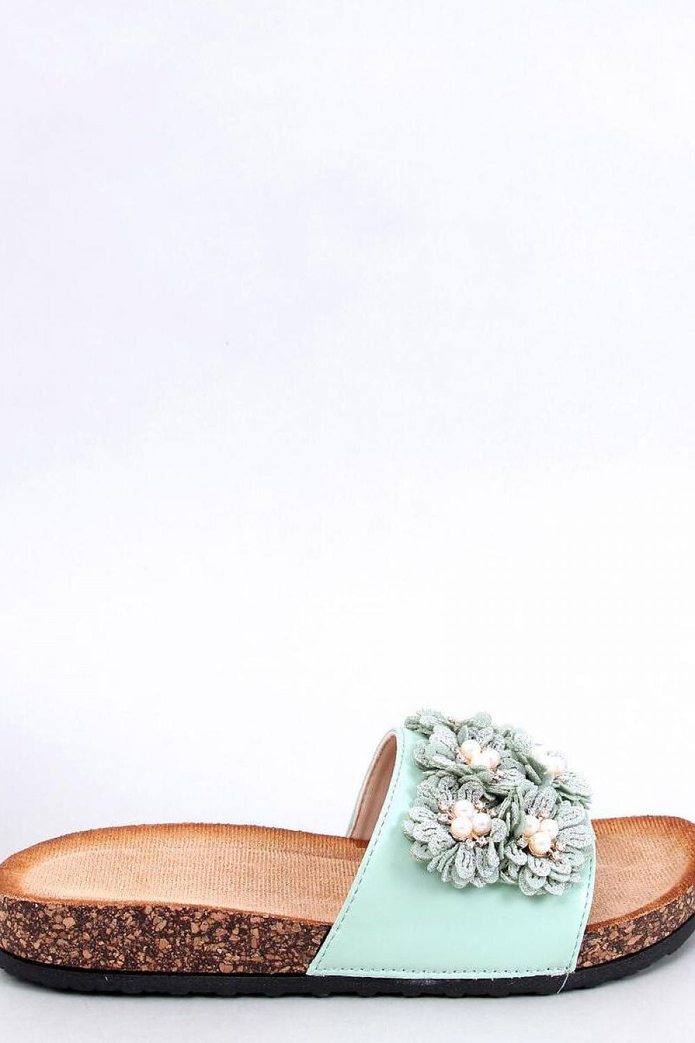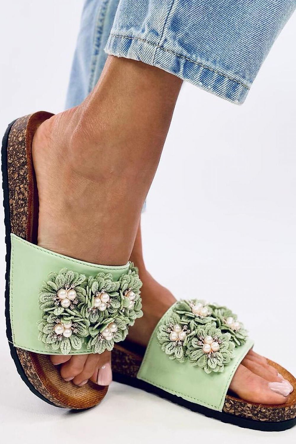 Women's leather flip-flops on a cork sole. Adorable flowers with shiny pearls and rhinestones will steal your heart :) Meanwhile, the contoured inner insole will make you want to take them on every vacation walk :) Outer material? Eco leather + fabric.
