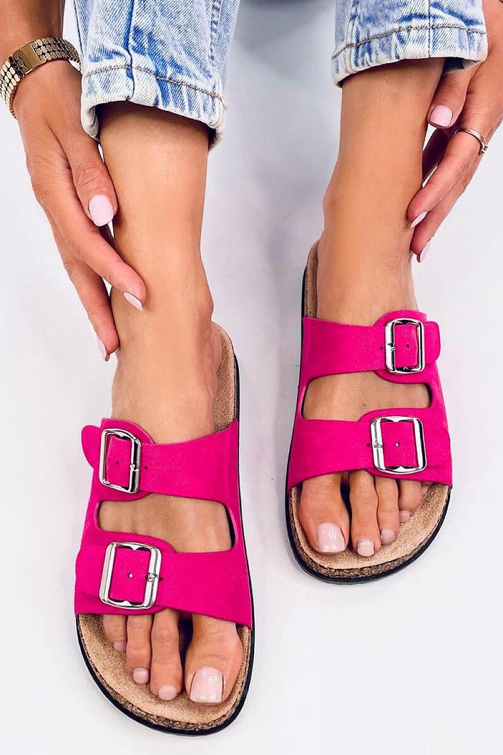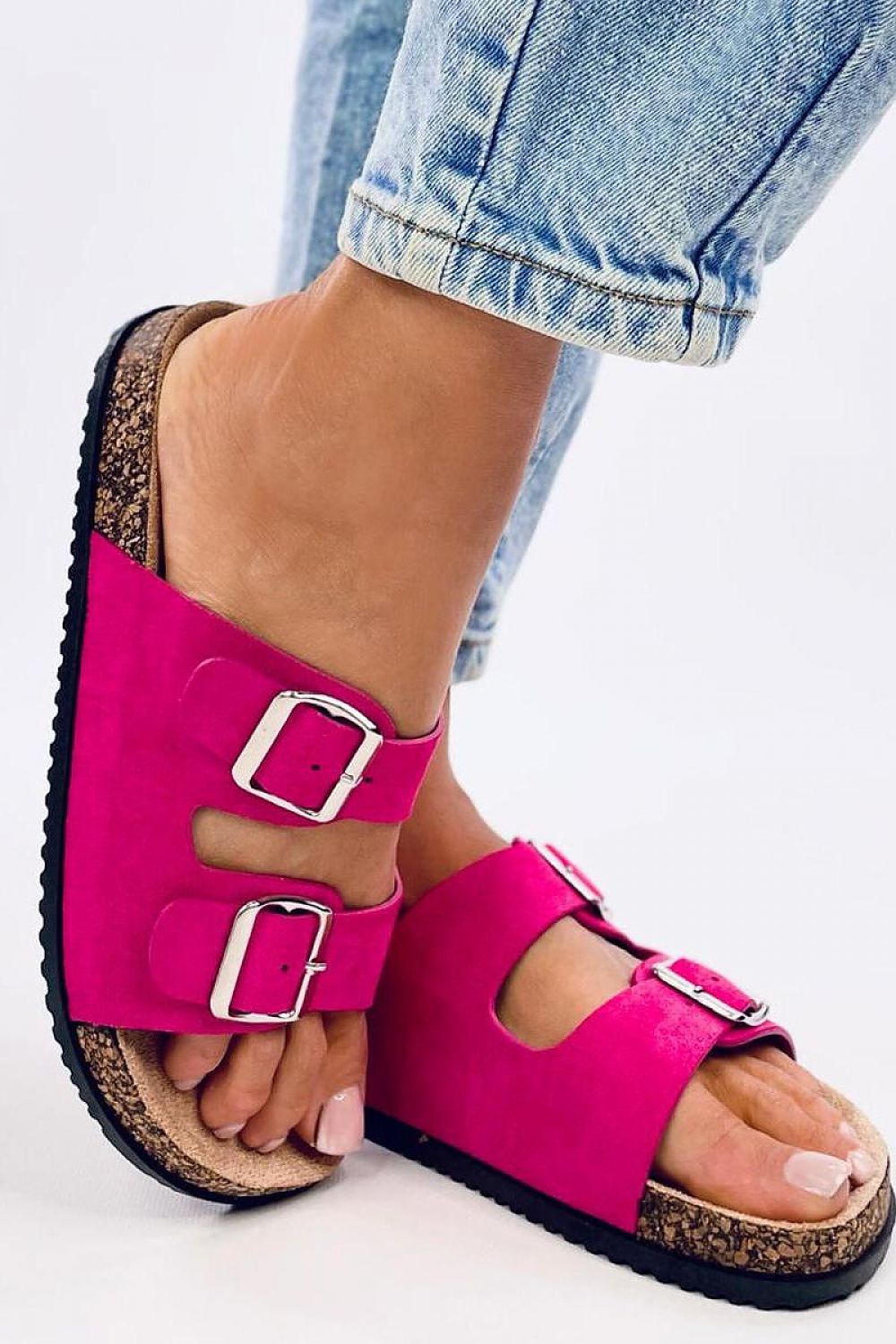 Women's suede slides on a cork sole. Adjustable buckles ensure a perfect fit to the foot, and the contoured insole guarantees comfort at every step ? see for yourself! They are the perfect shoes for summer : ) Outer material - eco-friendly suede.