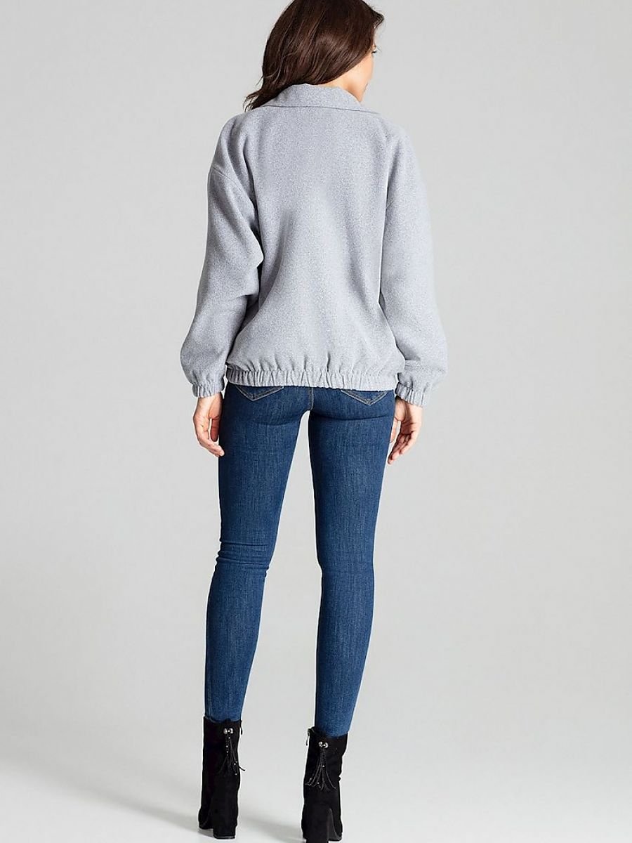 Grey short jacket with dropped sleeves, decorative buttons. Loose-fitting jacket with a lining, pockets at the side seams. Elastic band on sleeves and at the bottom of the jacket.