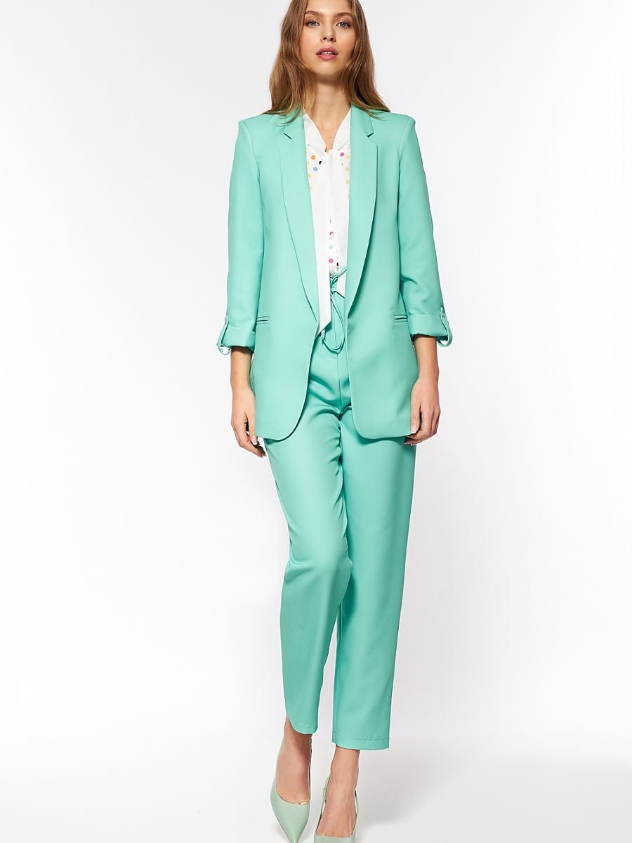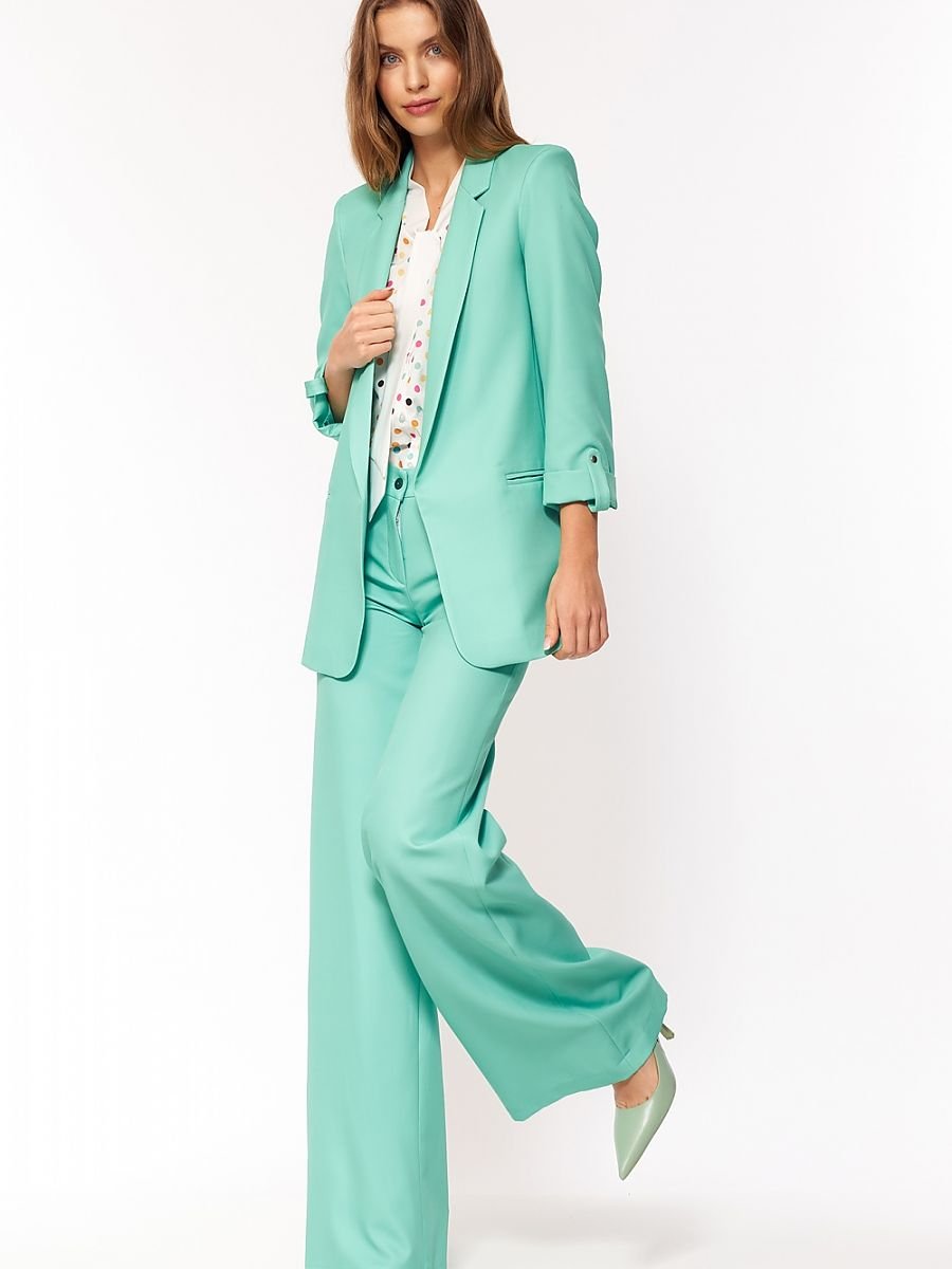 Welcome spring with a color! Oversize blue blazer with rolled up sleeves is a perfect choice for every occasion! Can be matched with elegant pants or pencil skirt, shorts, jeans or a spring dress. Unbuttoned, lined jacket.