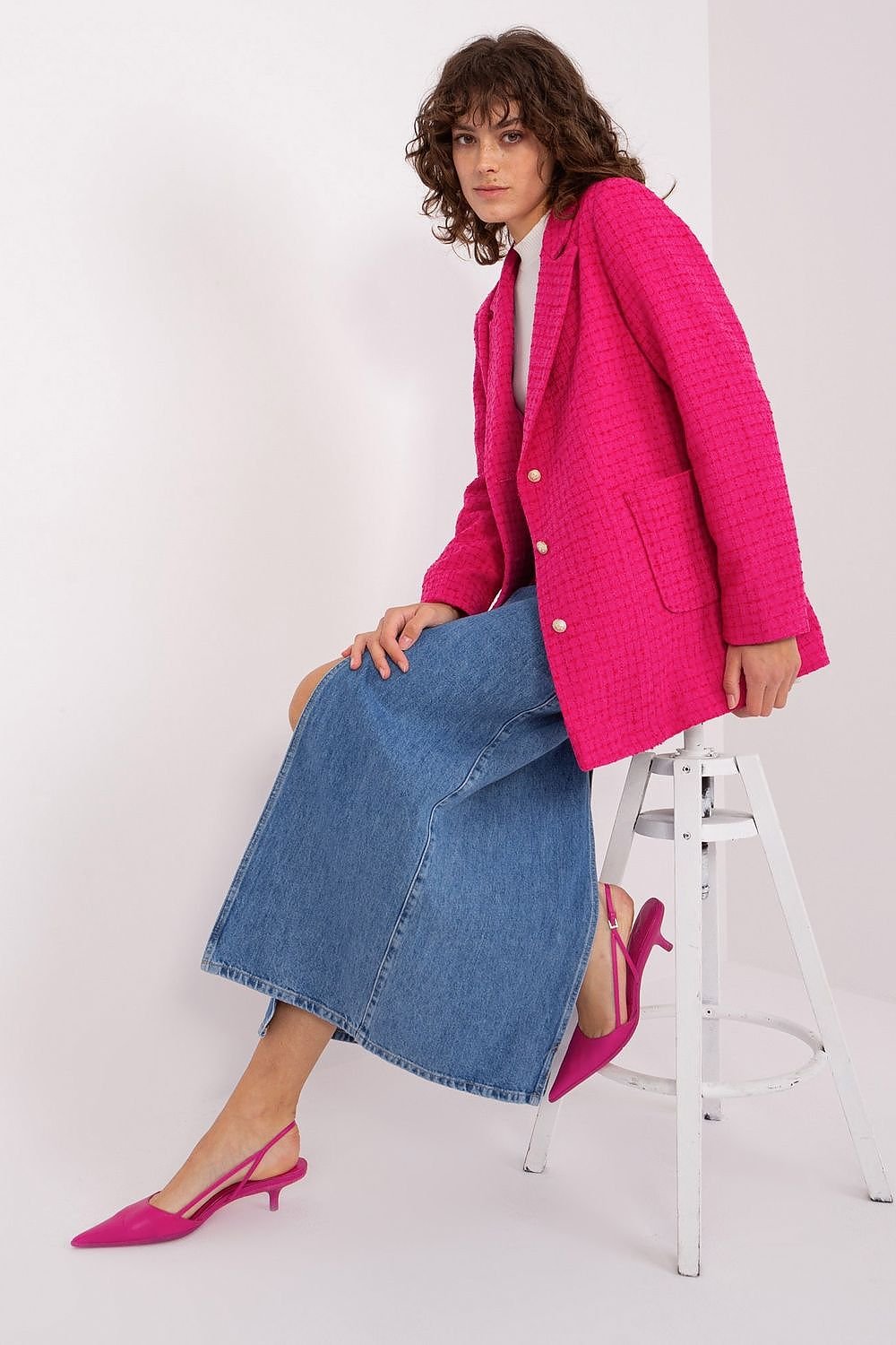 This elegant jacket is a versatile piece of clothing, suitable for everyday wear, work and occasions. Made of mostly cotton material, it is pleasant to wear all year round. Its varied fabric texture adds to its unique character. The long sleeves and standard length make it a versatile choice for different seasons. The buttoned jacket with lining guarantees comfortable wearing. The patch pockets and lapels make it both practical and elegant. It blends perfectly with both everyday styling and formal sets. It is an indispensable item in every woman's closet, which allows you to create a variety of outfits.