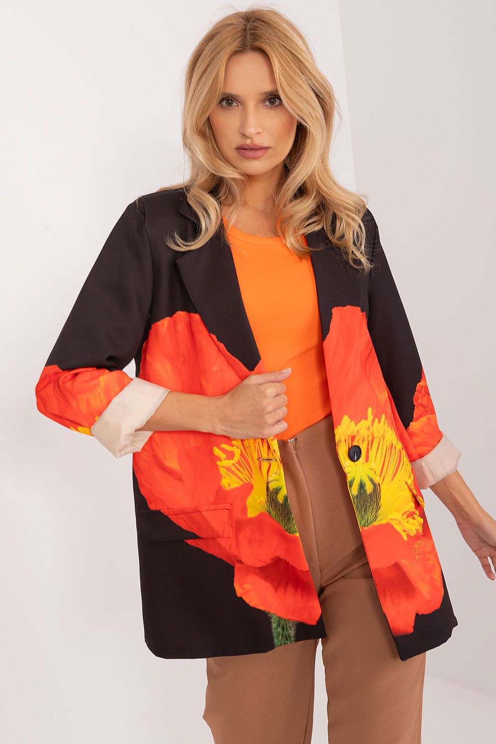 A blazer with an interesting print of large flowers is a unique piece of clothing that brings a touch of freshness and romance to styling. It will be perfect for a variety of occasions, from everyday situations, through work, to formal outings or events, adding originality to the entire styling. The print in the form of large flowers gives the jacket a distinct and decisive character, while remaining a stylish element of a casual closet. The casual style allows you to wear it every day, during work, as well as for more formal occasions. The jacket, made mainly of polyester, is lightweight, comfortable and suitable for different seasons, both in the cooler days of autumn and winter, as well as on warmer spring and summer days. The jacket's standard length, long sleeve and single-breasted button closure make it a versatile cut, easily combining with different garments. The presence of a lining increases the comfort of the wearer and gives the jacket a solid structure. This jacket with a floral print is an ideal choice for women who want to bring a touch of freshness and delicacy to their closet. It is perfect for both everyday styling and more formal outfits, creating a unique and feminine atmosphere.