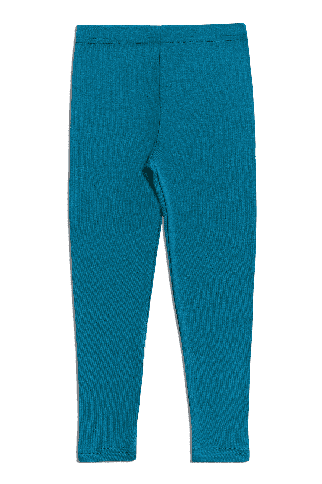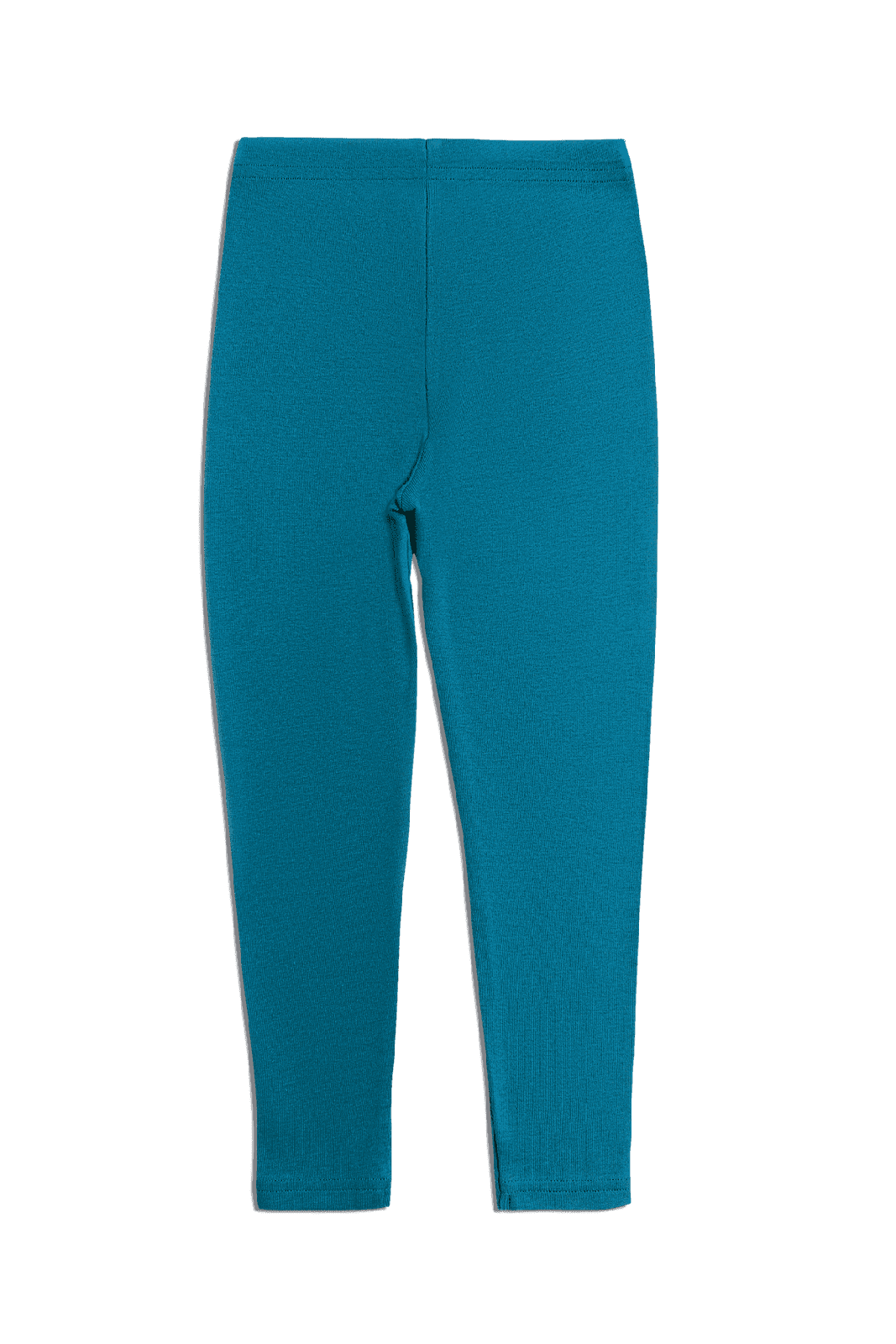 Hochwertige Rippjersey Leggings aus 100% Bio-Baumwolle (kbA) in einem ruhigen Donaublau. Besonders hautfreundlich und angenehm zu tragen mit einem Flachgummiband, was problemlos gewechselt werden kann.