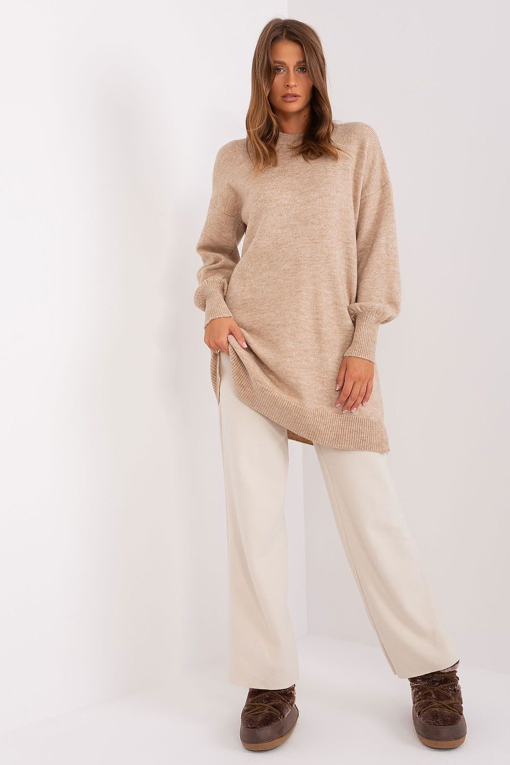 Women's sweater with a smooth texture is an excellent choice for everyday wear. Made of soft acrylic, it guarantees wearing comfort and durability. Its long sleeve makes it perfect for colder days, while the stylish round neckline adds subtle charm. The long cut makes it a great choice for both work and casual gatherings. The versatile nature of this sweater allows it to be easily matched with different styles, making it a must-have closet item. Smooth yet classy, the sweater is ideal for women who appreciate simplicity and elegance in one.