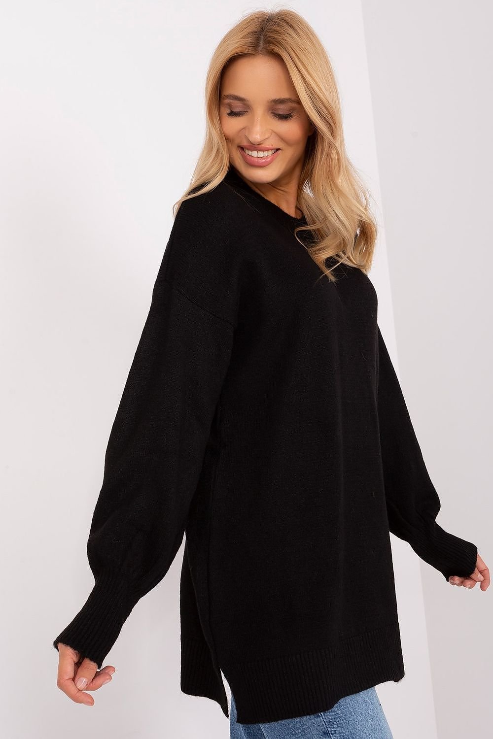 Women's sweater with a smooth texture is an excellent choice for everyday wear. Made of soft acrylic, it guarantees wearing comfort and durability. Its long sleeve makes it perfect for colder days, while the stylish round neckline adds subtle charm. The long cut makes it a great choice for both work and casual gatherings. The versatile nature of this sweater allows it to be easily matched with different styles, making it a must-have closet item. Smooth yet classy, the sweater is ideal for women who appreciate simplicity and elegance in one.