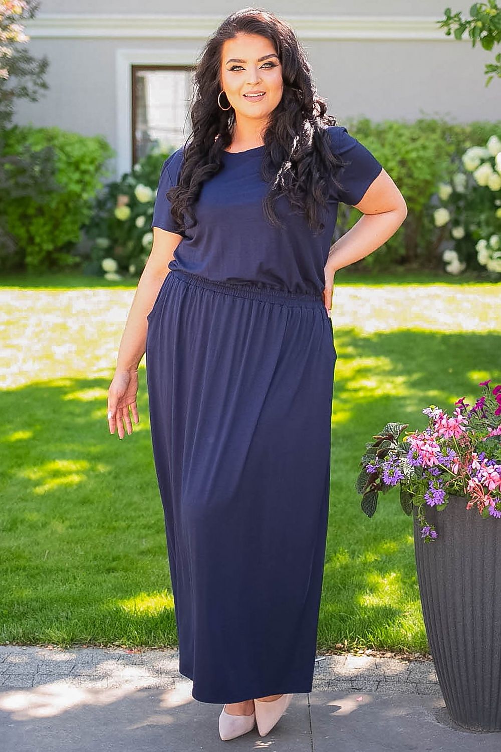 Iwona long dress combines simplicity, unsophisticated elegance and unearthly comfort, which predetermines the great satisfaction of wearing it. Made of high-quality stretch and airy material, it is maxi length, with short sleeves and practical pockets on the side. An important element in the dress is a crinkled elastic waistband, giving you the opportunity to freely let the top out while adjusting the length of the skirt. XXL women, owners of curves and ladies wearing large sizes will feel safe and attractive in it, as this model perfectly covers up imperfections in the abdominal area and sides. The dress is ideal for plus size ladies who do not have a waist. Perfect for both work and summer occasions. If you are looking for a dress that will be like a second skin for you and that you will love from the first time you put it on, our Ivona model will certainly meet your expectations. This exceptionally comfortable and versatile proposal will work especially well in less formal situations, such as shopping with a friend, an outing to a cafe or going to the cinema, or even a weekend trip with the family or relaxing in your own garden. However, nothing stands in the way of wearing the Ivona dress also to work, both stationary and during home office. Just choose the right accessories, such as high-heeled shoes, an elegant handbag and a well-tailored jacket, and you'll be sure to make a statement in the office and at a company meeting. After work, on the other hand, swap your blazer for a denim jacket and your stilettos for comfortable sneakers and enjoy your free time the way you like it best.