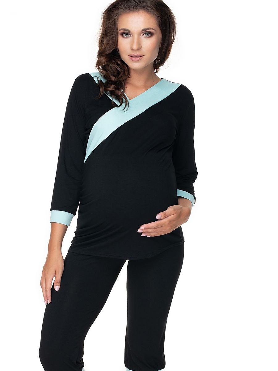 Maternity and nursing pajamas. Trousers with non-compressive panel. Can also be worn after pregnancy. Legs with ribbed waistband.