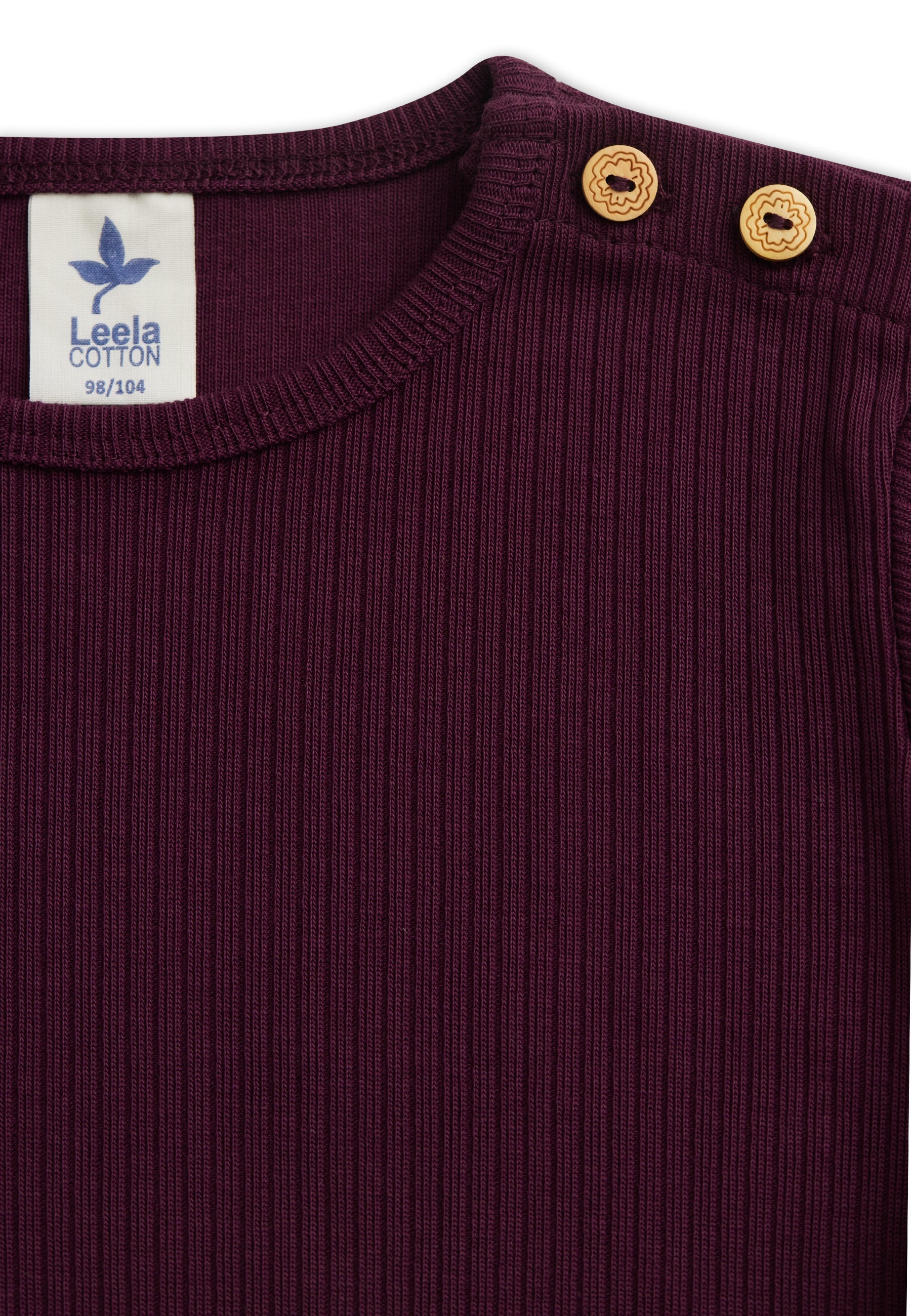 Hochwertiges Rippjersey Langarmshirt aus 100% Bio-Baumwolle (kbA). Besonders atmungsaktiv und angenehm zu tragen mit Holzknöpfen an der linken Schulter(bis Größe 98/104), die das Ankleiden erleichtern.