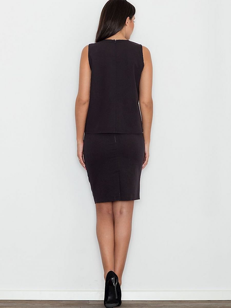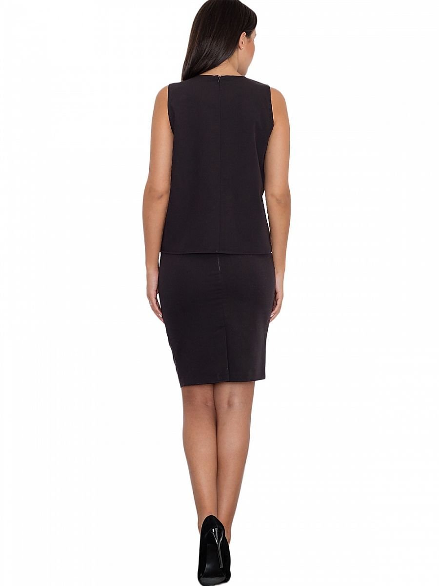 Elegant set in a simple version. A blouse with a decorative gold accent adds chic and modernity. Skirt fitted before the knee with eco-leather inserts, covered zip. The set is perfect for many occasions of the day and evening.