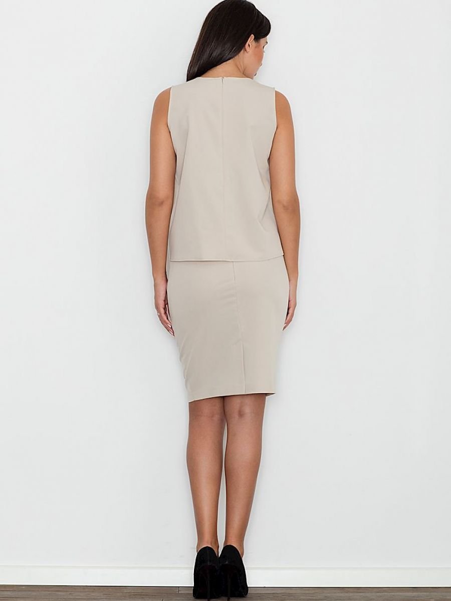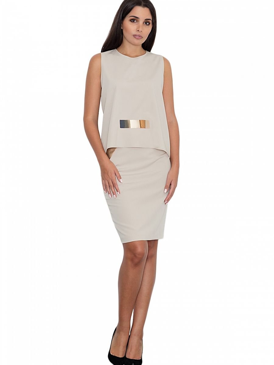 Elegant set in a simple version. A blouse with a decorative gold accent adds chic and modernity. Skirt fitted before the knee with eco-leather inserts, covered zip. The set is perfect for many occasions of the day and evening.