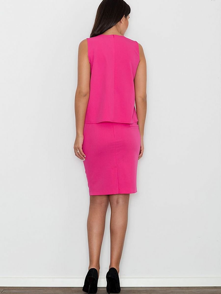 Elegant set in a simple version. A blouse with a decorative gold accent adds chic and modernity. Skirt fitted before the knee with eco-leather inserts, covered zip. The set is perfect for many occasions of the day and evening.