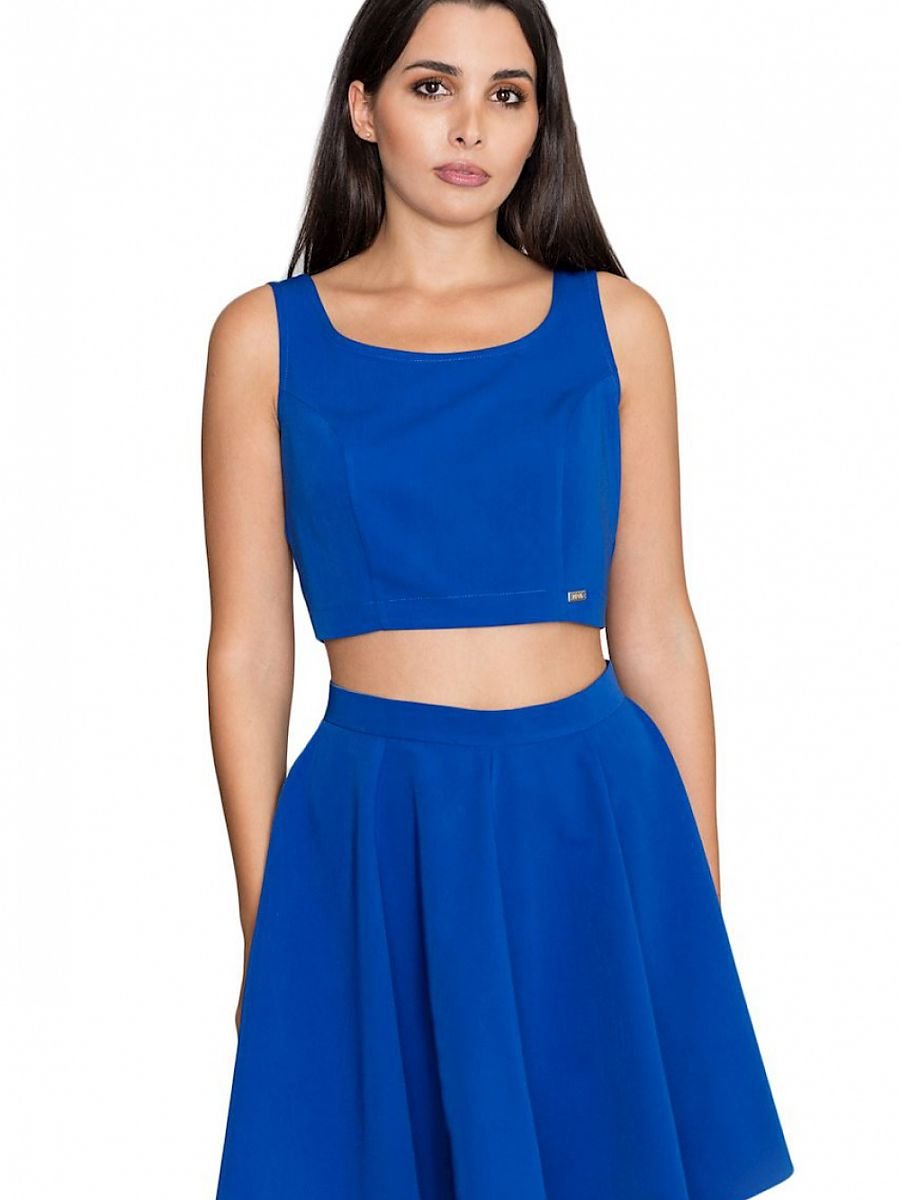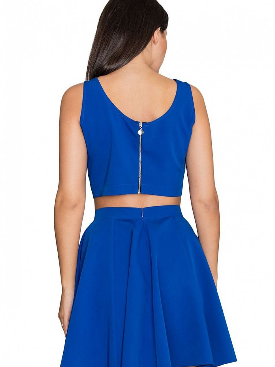 Short, loose top with a flared skirt in wedges. Top with silver decorative zipper at back adds elegance. The loose fit of the skirt adds comfort of everyday wear. A set for women who like to stand out from the crowd, trendy and feminine.