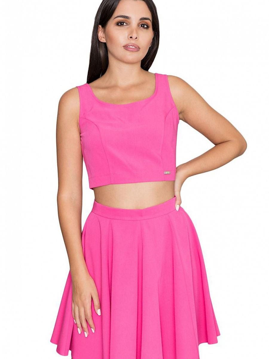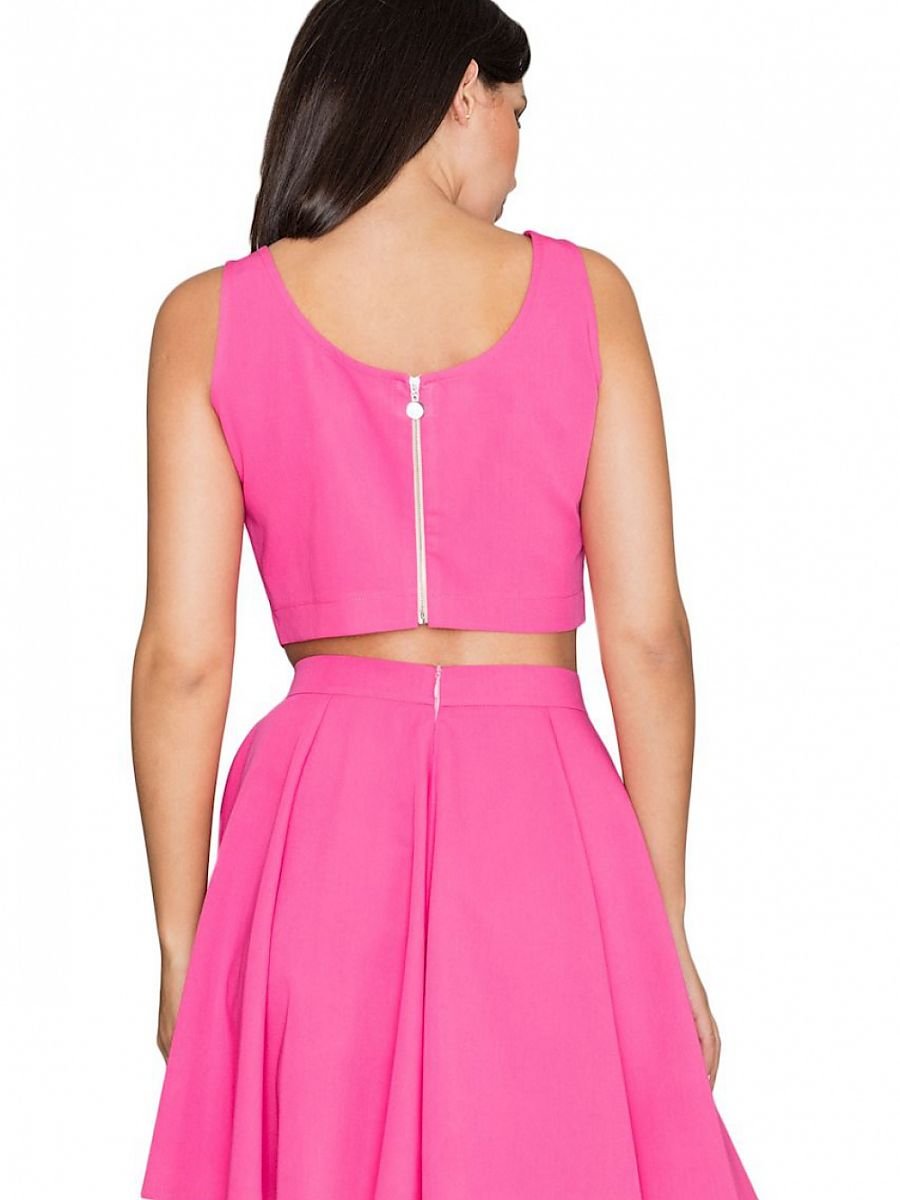 Short, loose top with a flared skirt in wedges. Top with silver decorative zipper at back adds elegance. The loose fit of the skirt adds comfort of everyday wear. A set for women who like to stand out from the crowd, trendy and feminine.