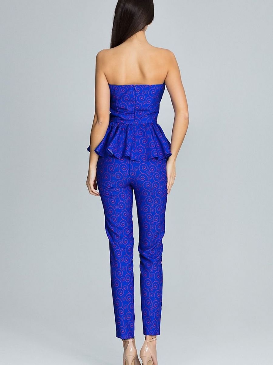An elegant set of straight trousers with a corset finished with a frill will make you look clear and feminine. A fashionable cut in a simple edition will go well with many stylings.
