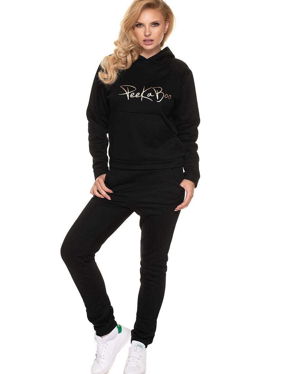 Sweatshirt set with hood. PeeKaBoo logo on front. Tracksuit made of soft material.