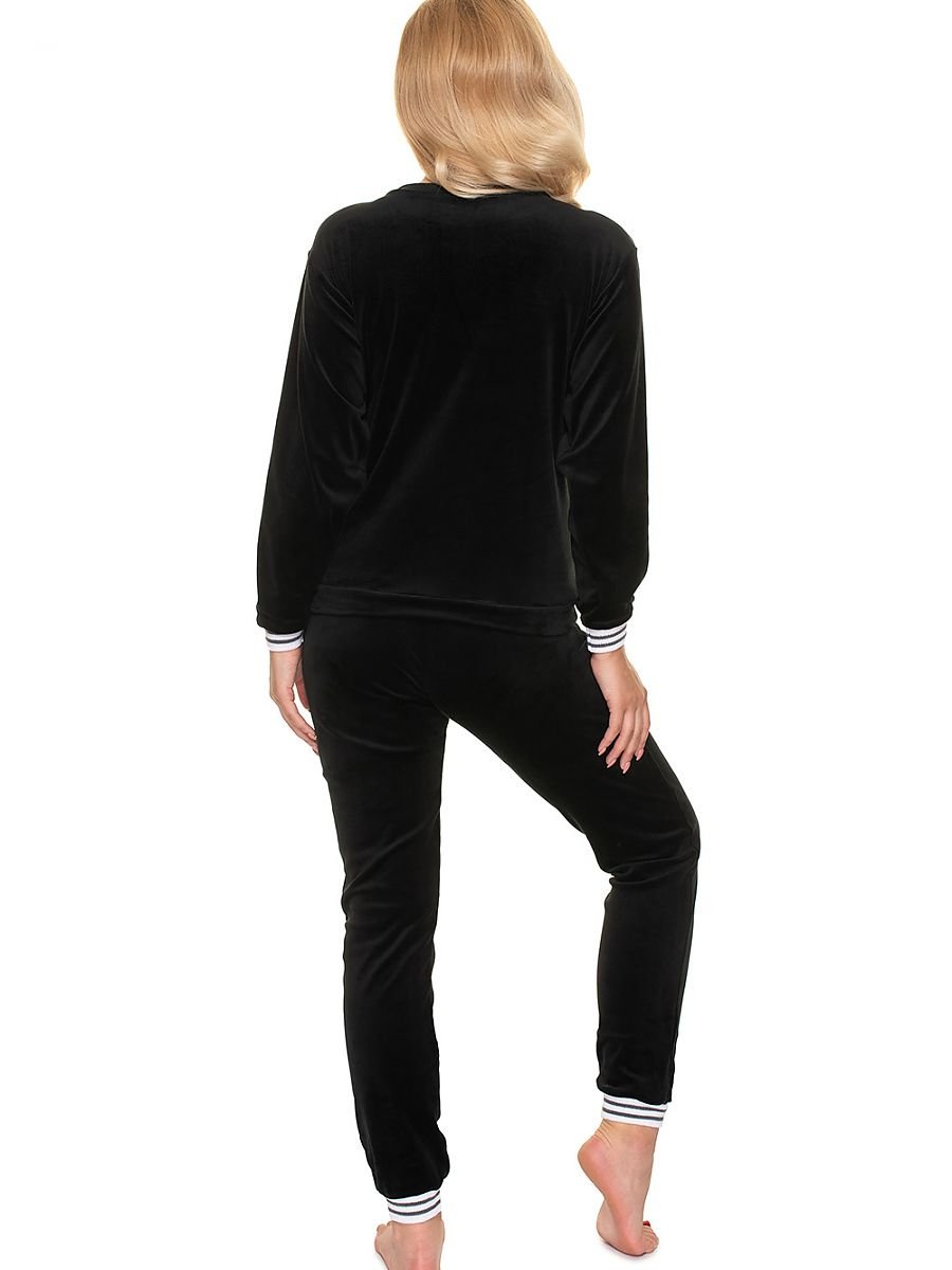 Tracksuit set with contrasting piping. Blouse with round neckline. The sweatshirt is made of soft velour fabric. Trousers with a non-pressure band.