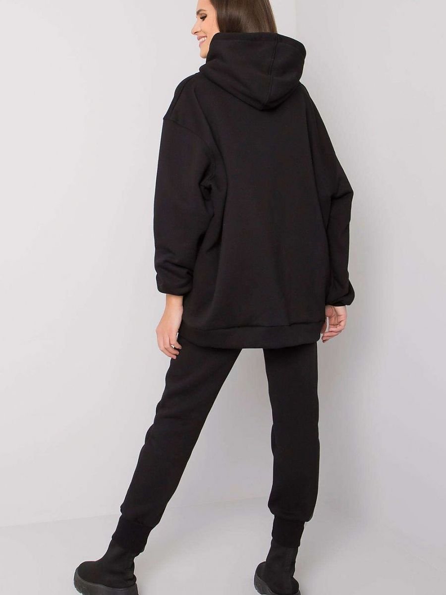 A set consisting of a sweatshirt and sweatpants. Sweatshirt put on over the head, with a hood and pockets. Straight cut trousers.