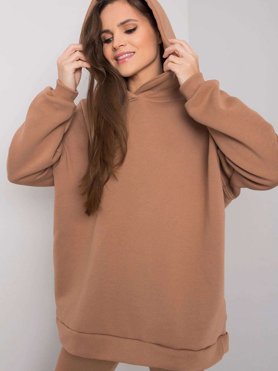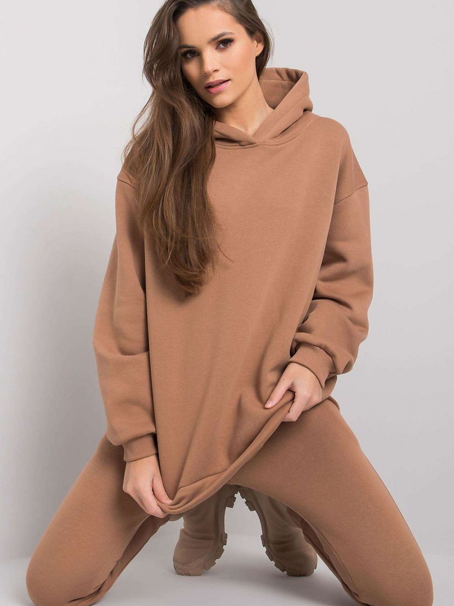 A set consisting of a sweatshirt and sweatpants. Sweatshirt put on over the head, with a hood and pockets. Straight cut trousers.