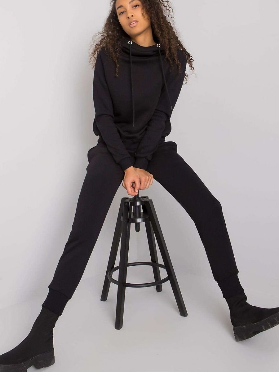 Tracksuit set consisting of a sweatshirt and trousers. Sweatshirt with long sleeves, hood and pockets. Trousers with waist tie and pockets.