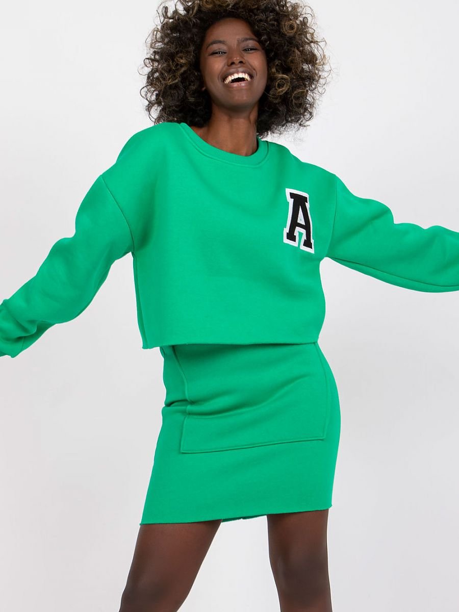 Set consisting of a blouse and skirt. Long sleeve blouse with printed letter on the front. Skirt in pencil cut with a drawstring waist.