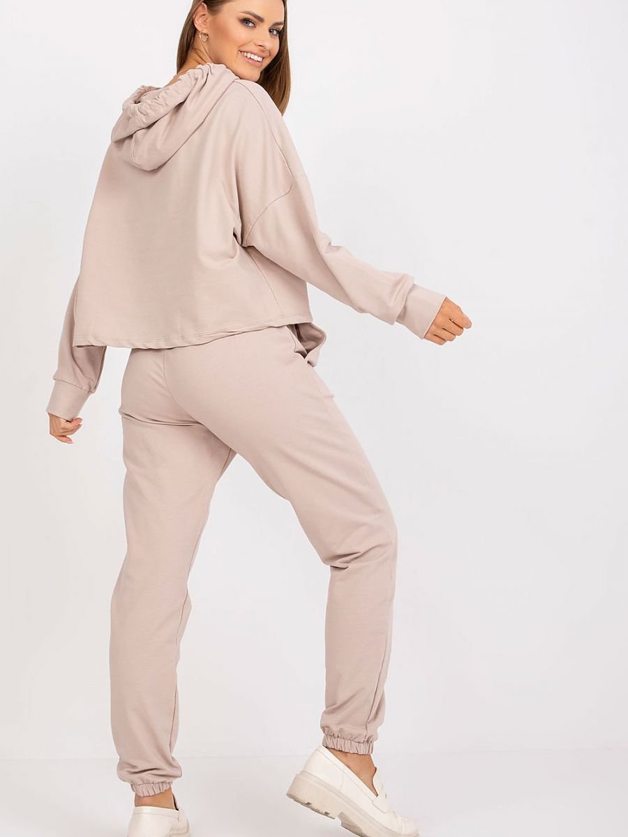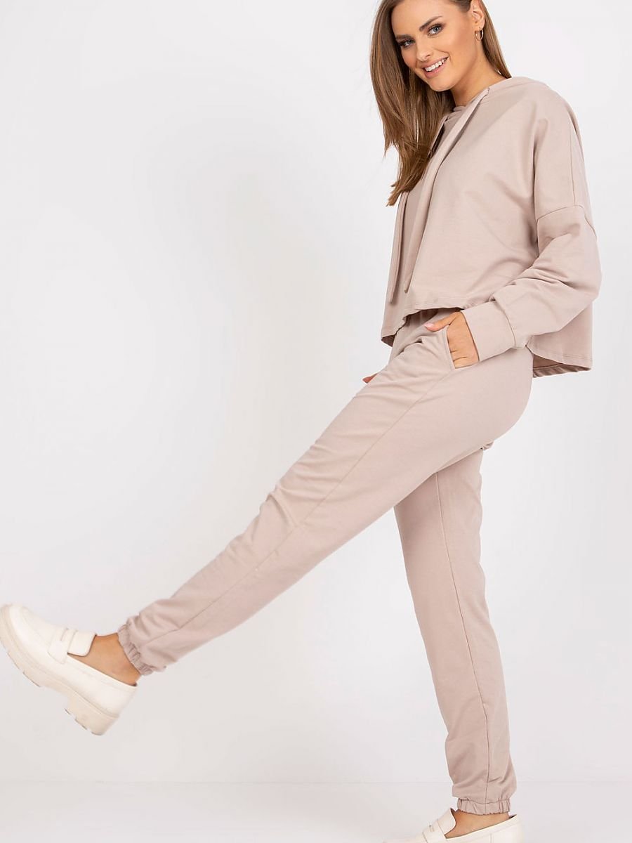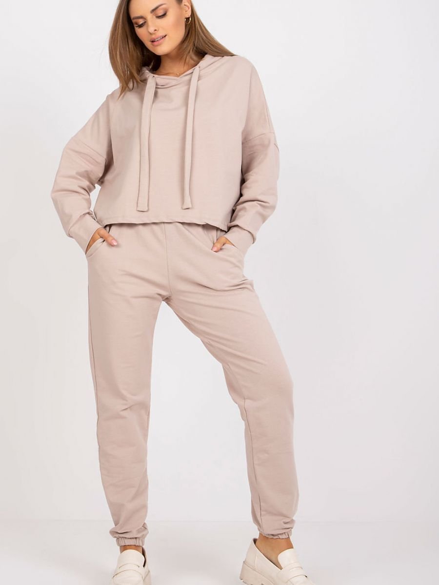 A set consisting of a sweatshirt and long pants. Sweatshirt with a loose fit, long sleeves and a hood. Long pants with elastic waistband and slip pockets.